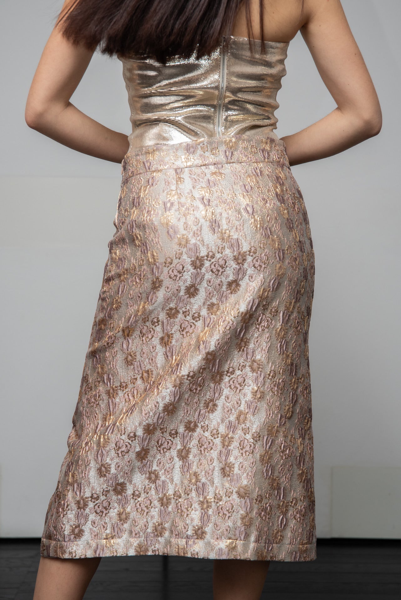 Gonna Giorgina Broccato Rosa Cipria