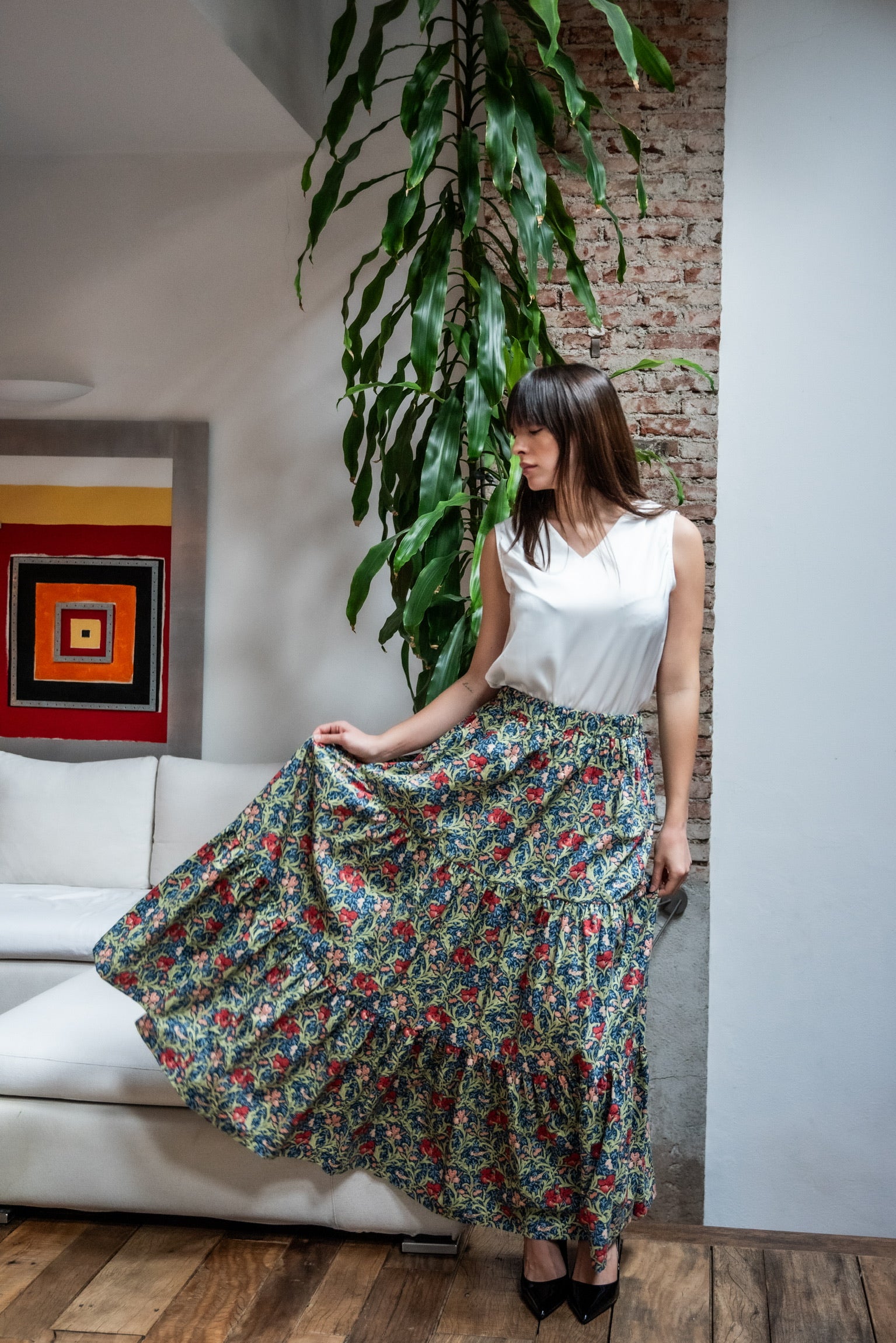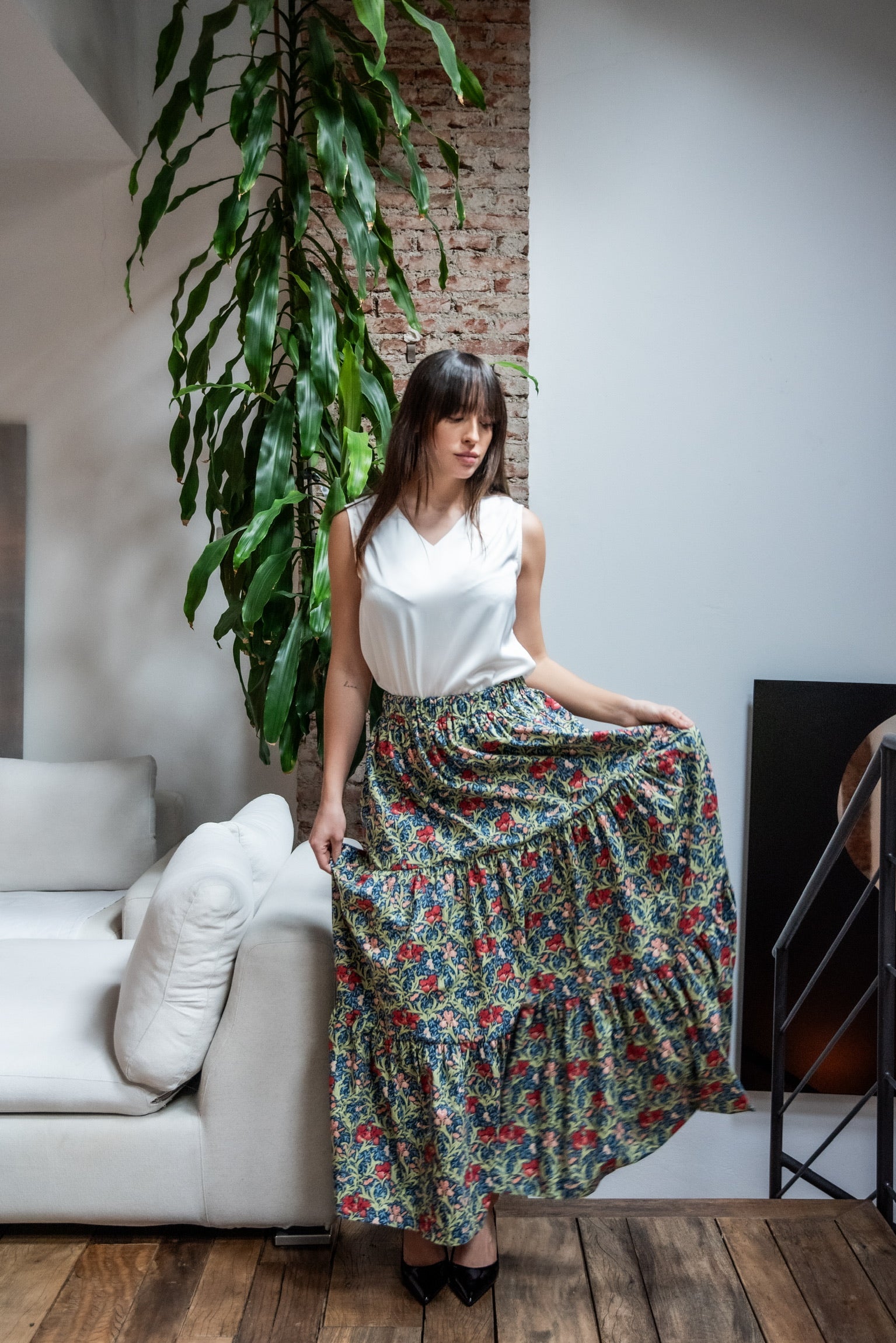 Migliora il tuo guardaroba con l'elegante Gonna Franci. La gonna Franci è realizzata in cotone di alta qualità, questa gonna lunga presenta delicate balze, aggiunge un tocco di raffinatezza a qualsiasi outfit. Perfetta per ogni occasione, questa gonna ti manterrà comoda ed elegante dal giorno alla sera. Immancabile nella valigia per l’estate