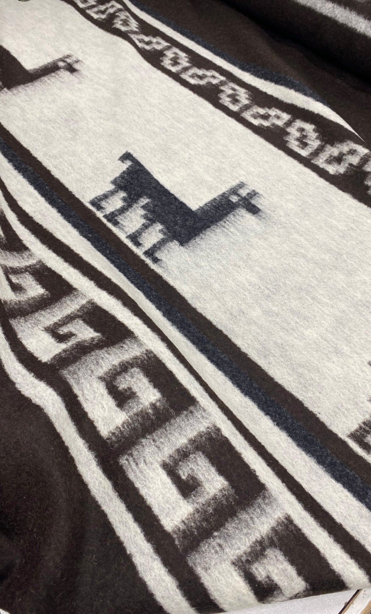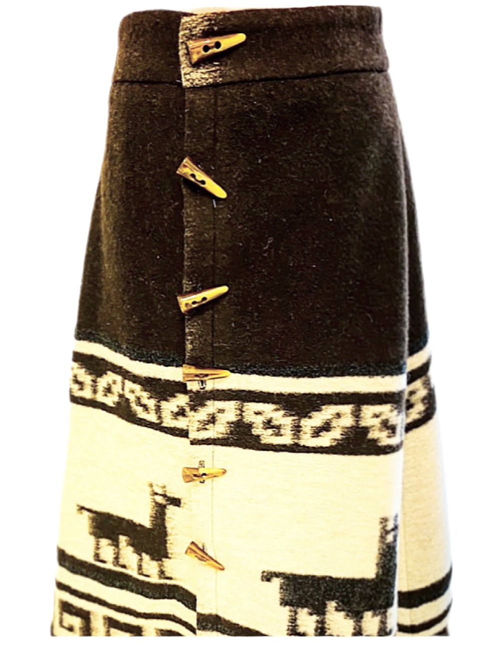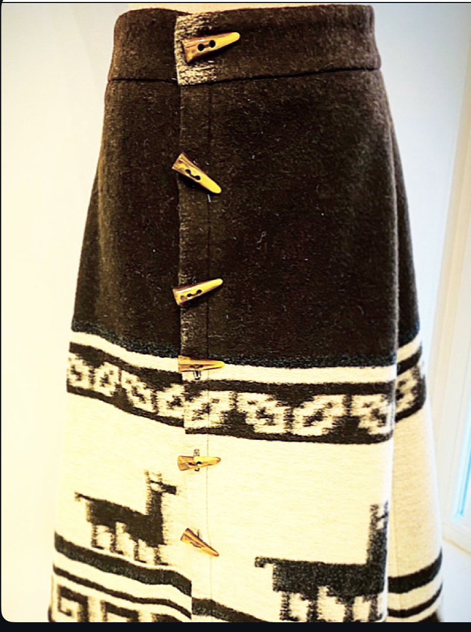 Gonna Letizia a trapezio in pura lana peso cappotto con motivo invernale e bottoni in legno