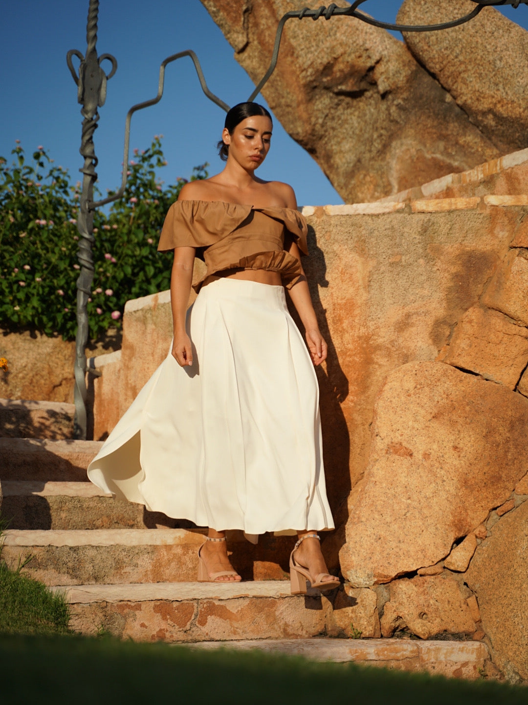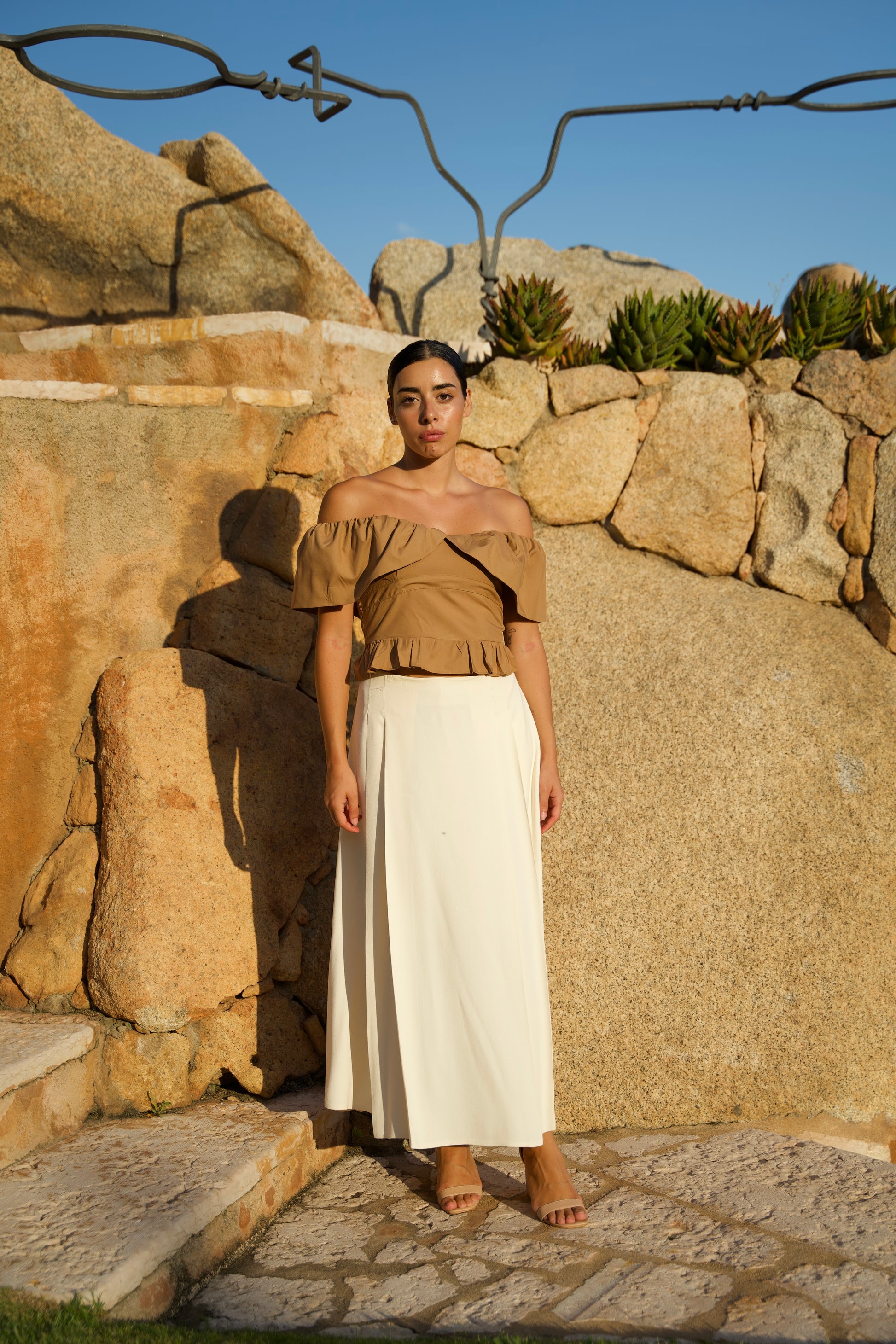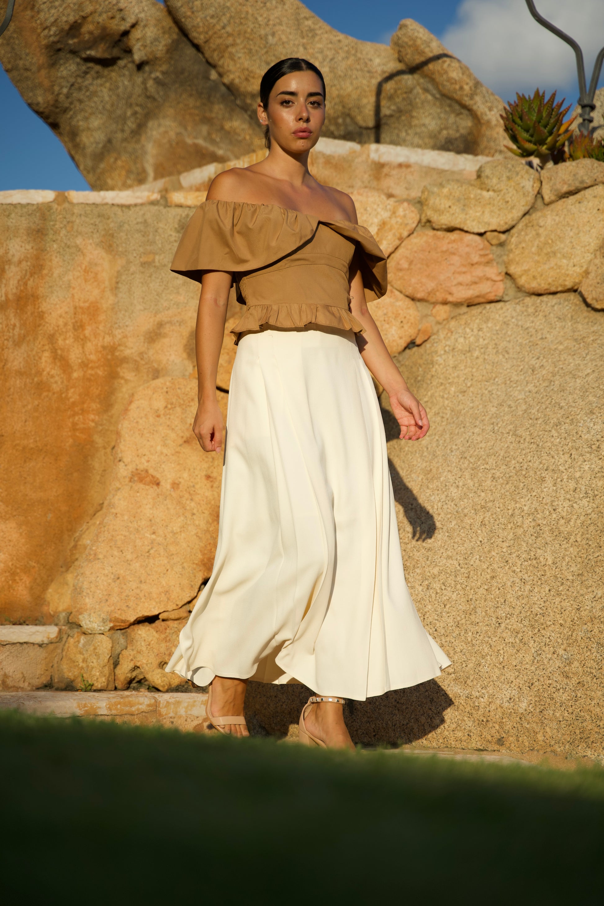 Gonna modello Luisa e’ una gonna in cadi’ con pieghe e spacco laterale. Disponibile in altre varianti di colore in tinta unita. Per maggiori info sui colori disponibili wup al +393470657811