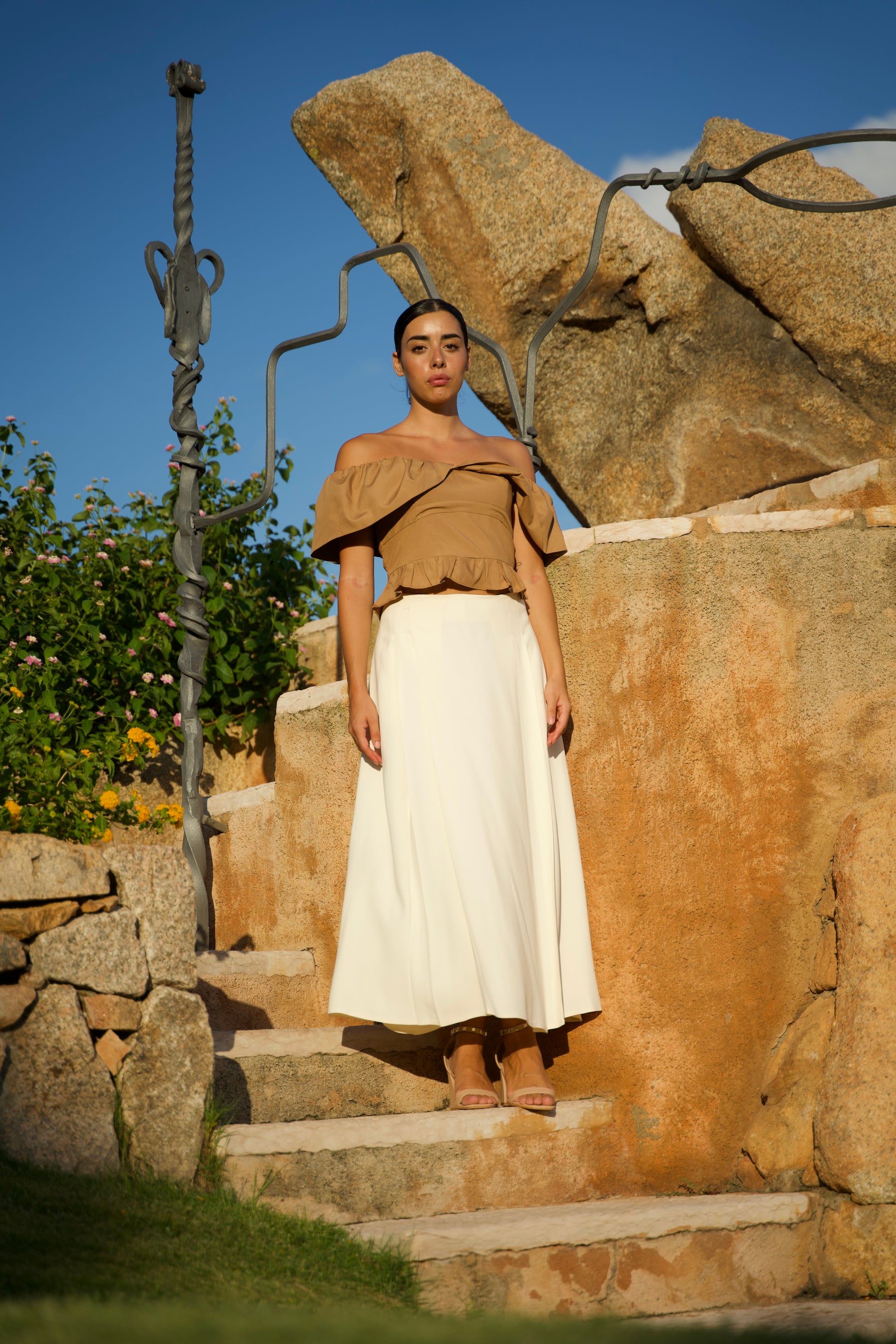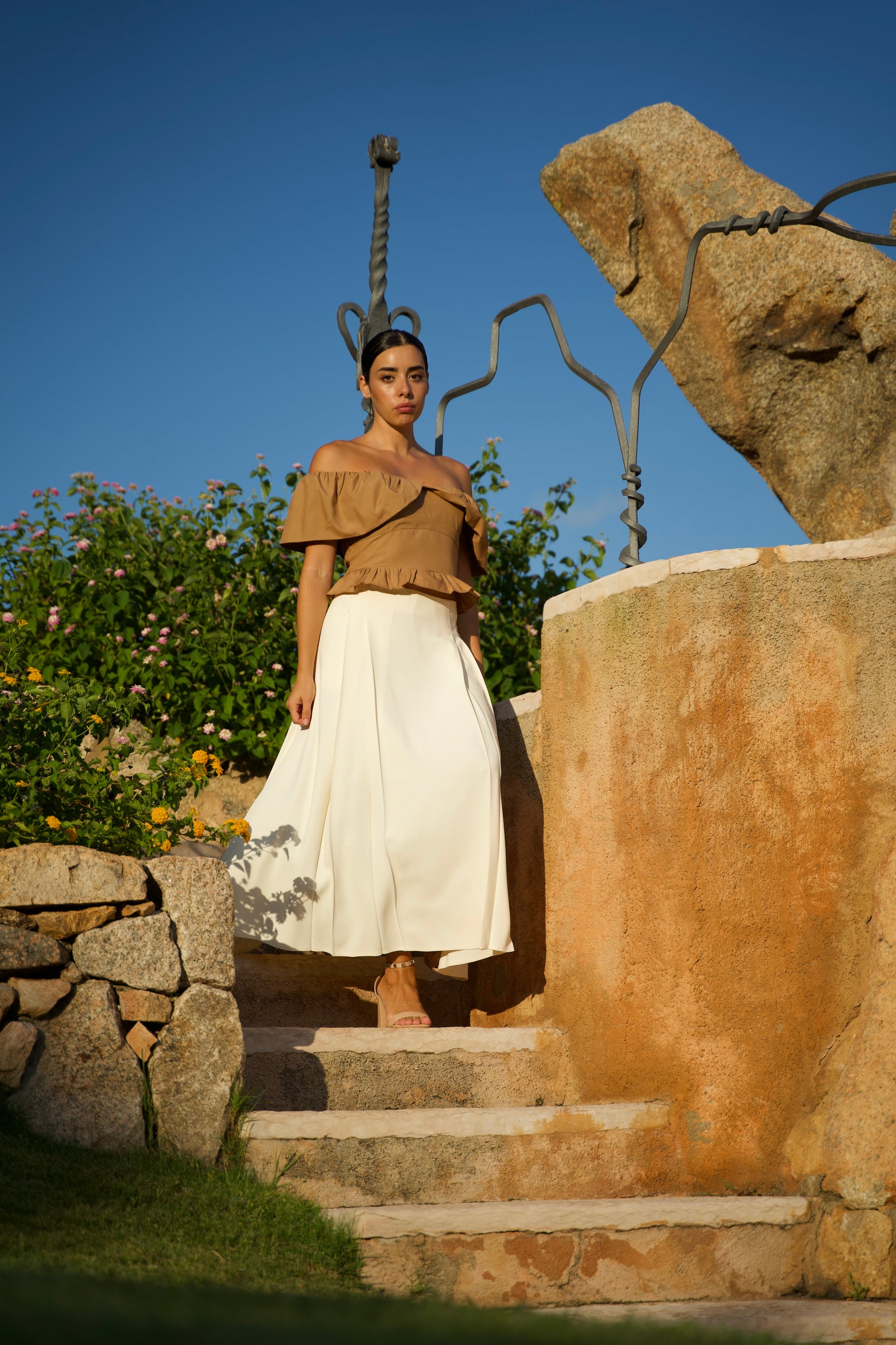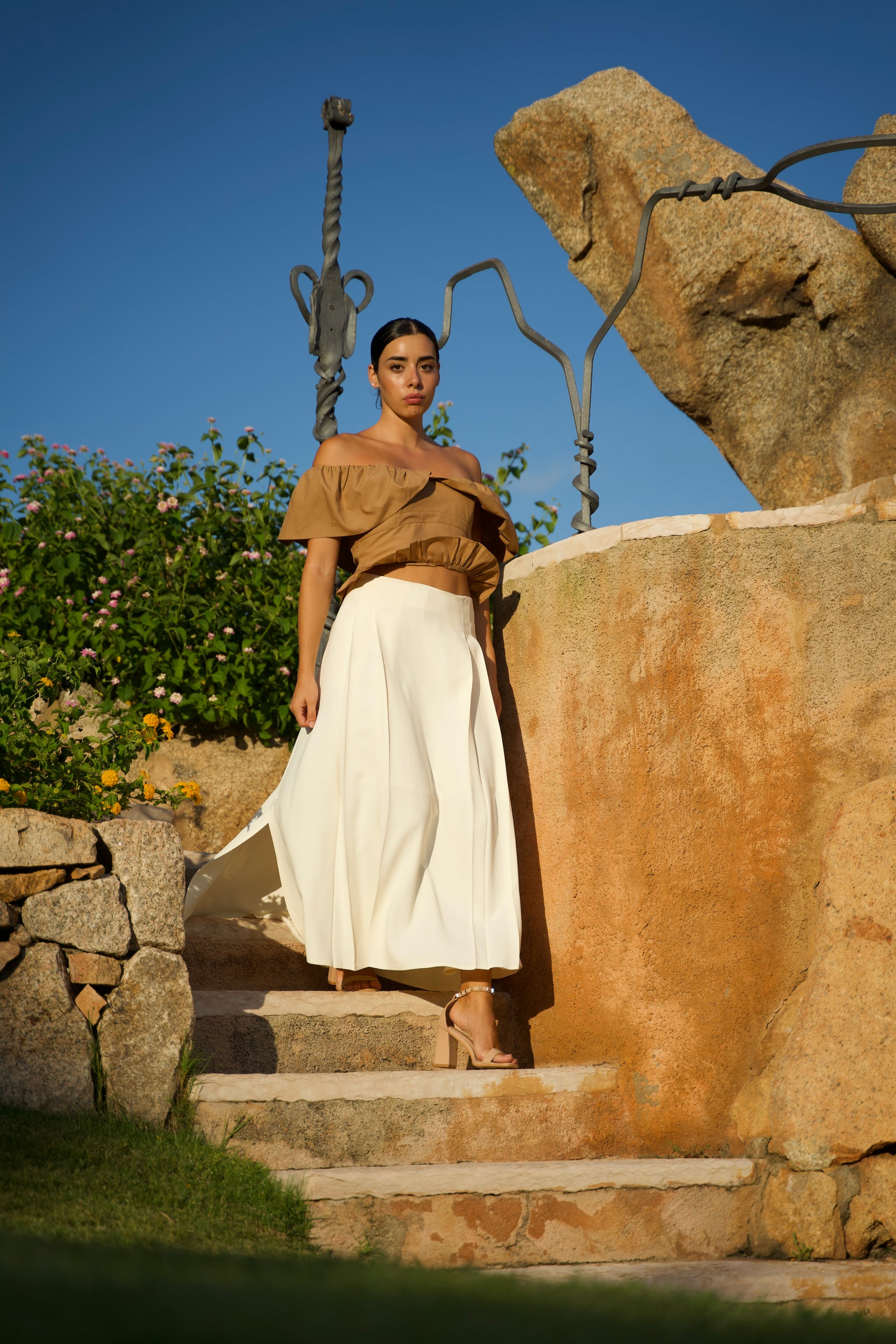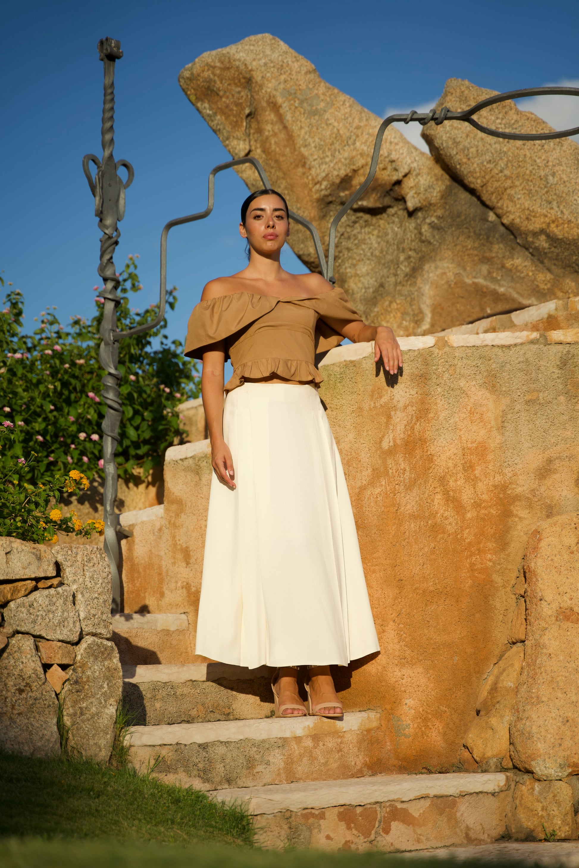 Gonna modello Luisa e’ una gonna in cadi’ con pieghe e spacco laterale. Disponibile in altre varianti di colore in tinta unita. Per maggiori info sui colori disponibili wup al +393470657811