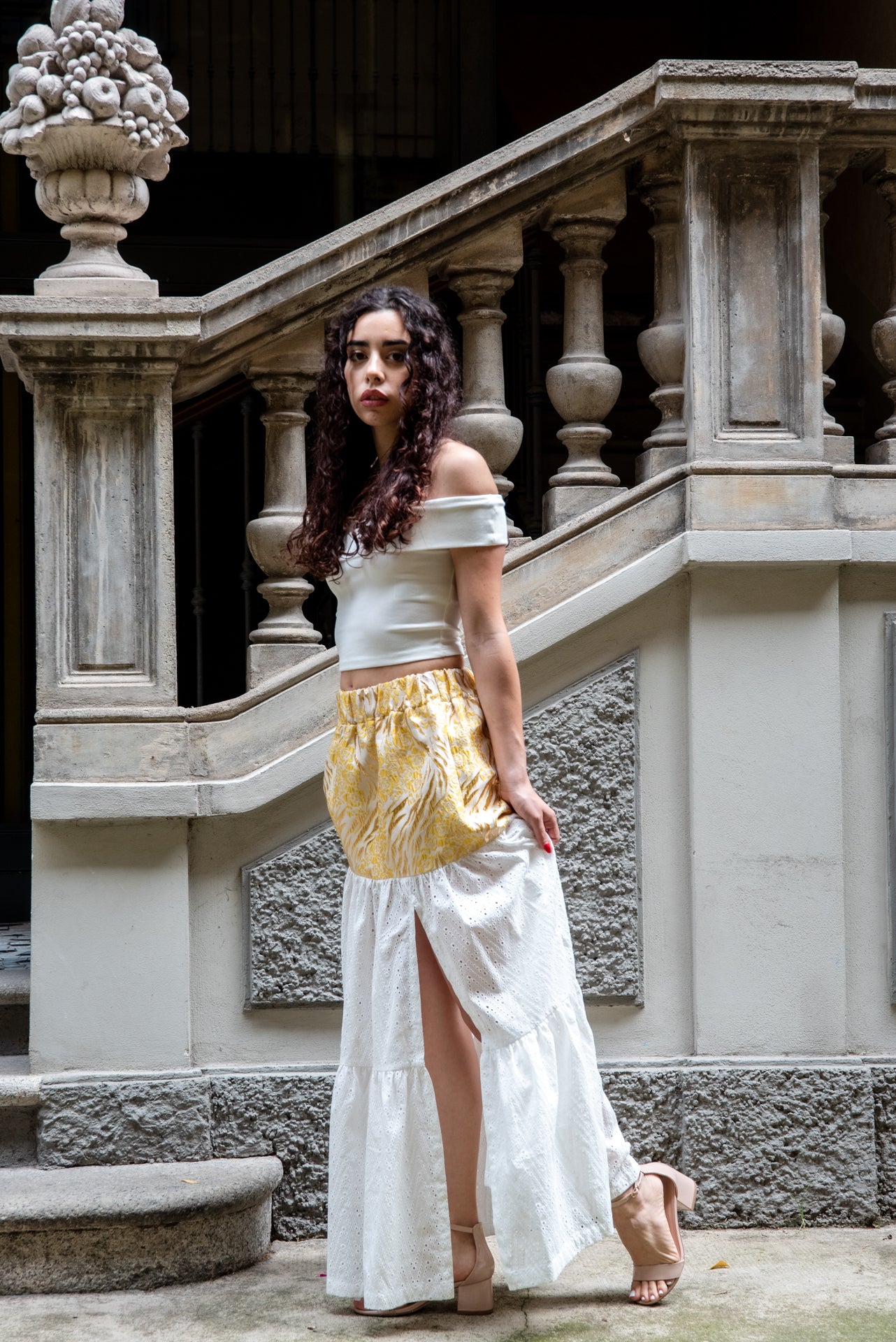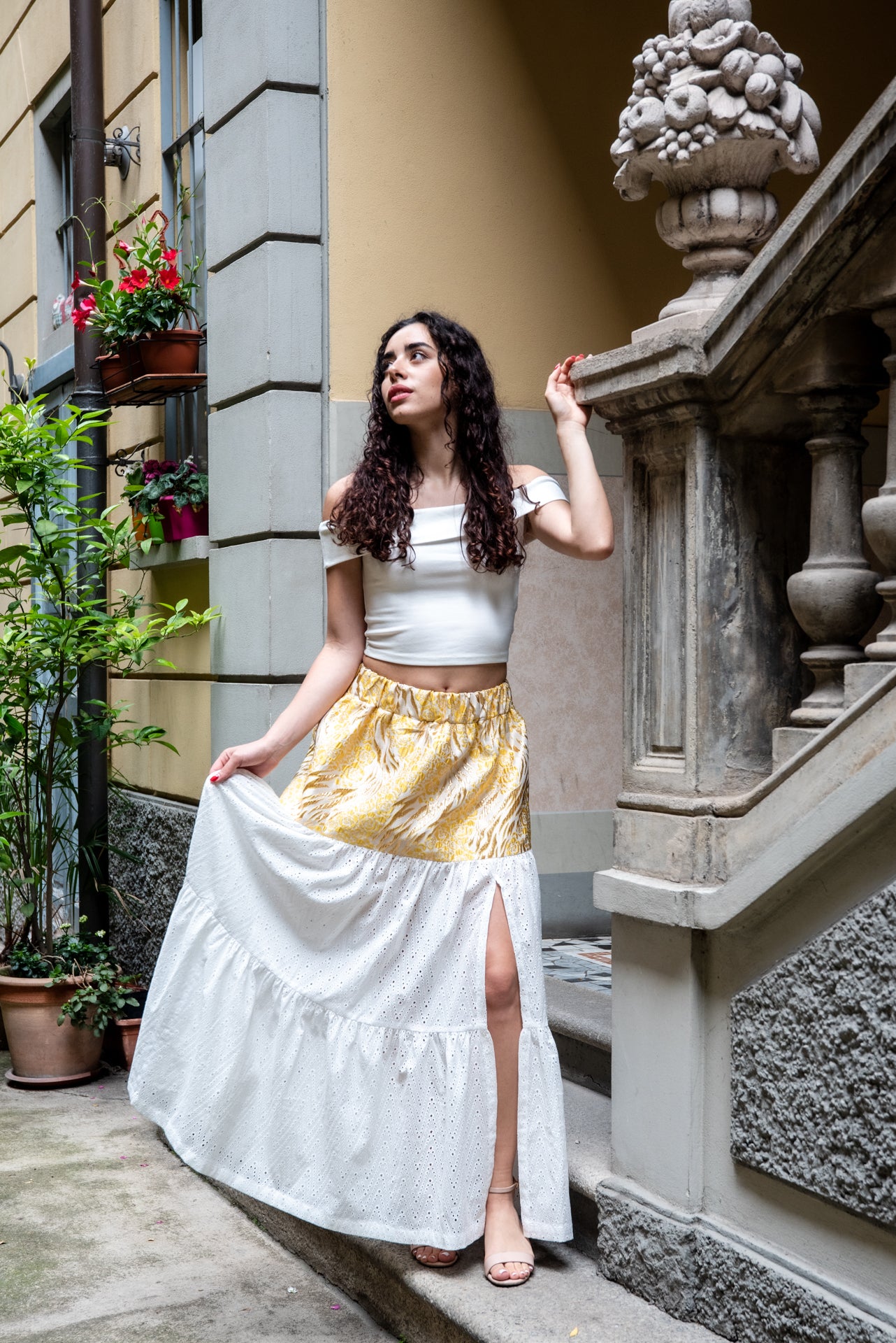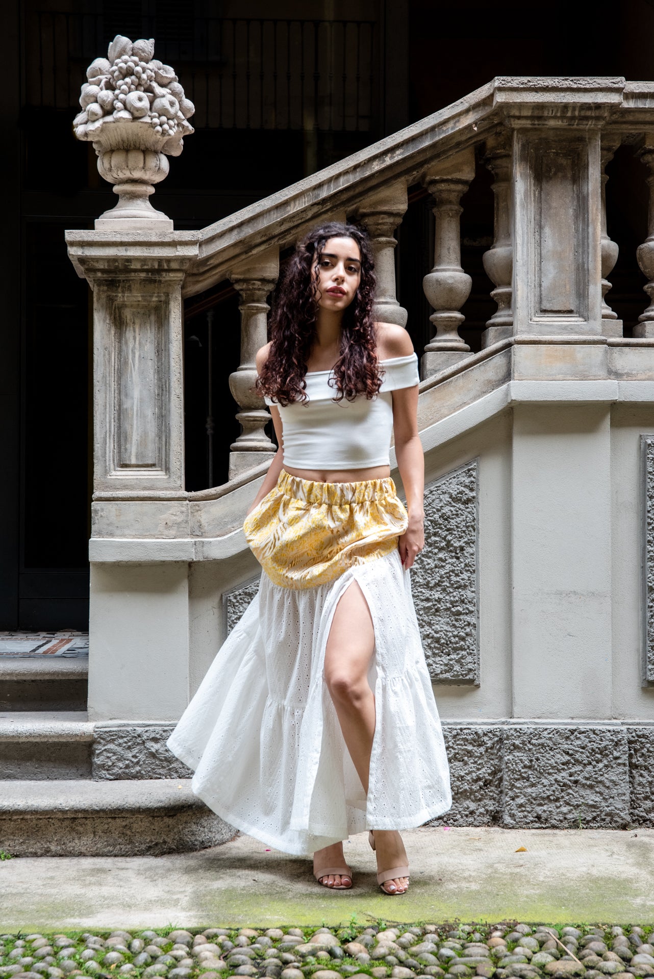 Gonna Franci Broccato Limone e Cotone Ricamato