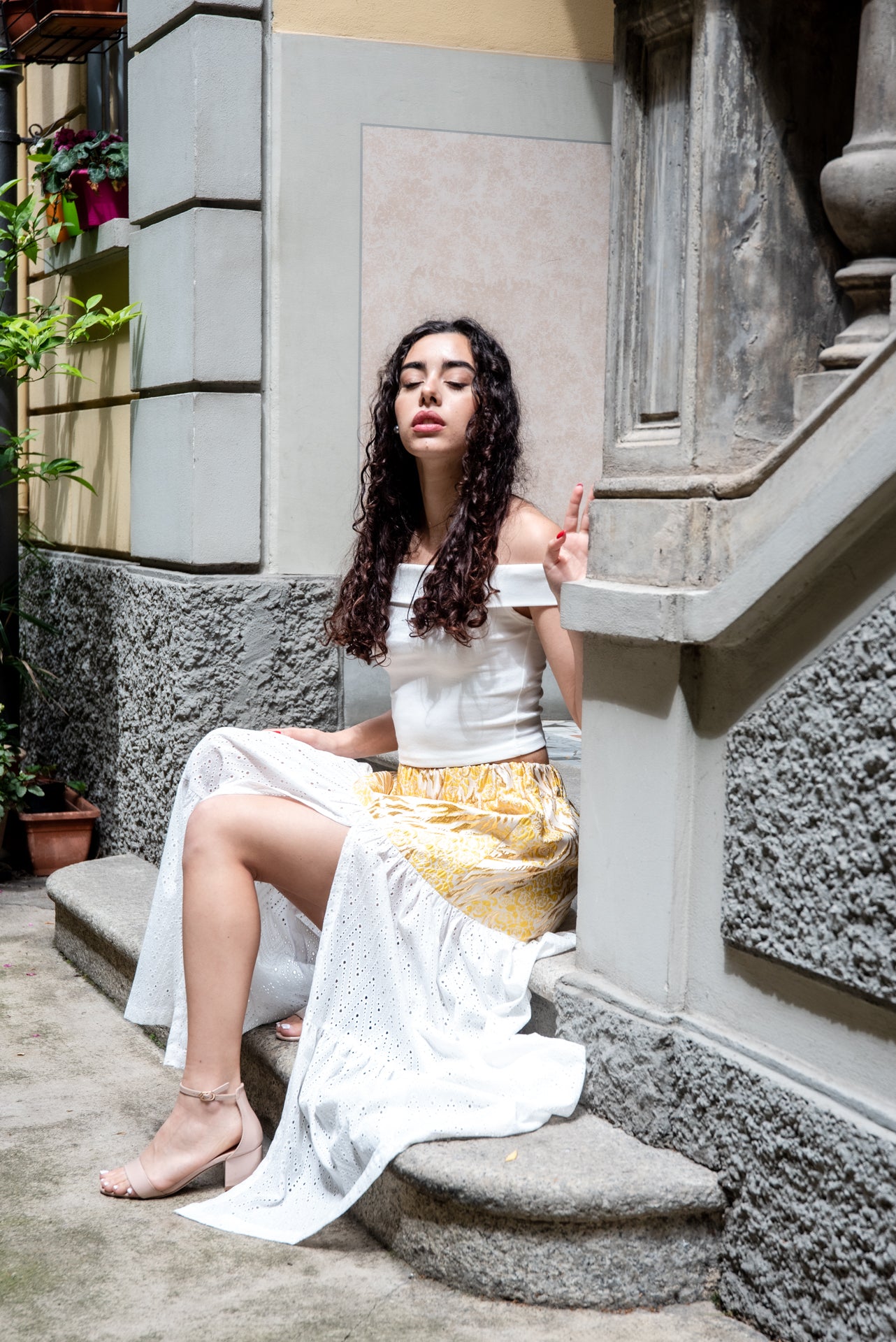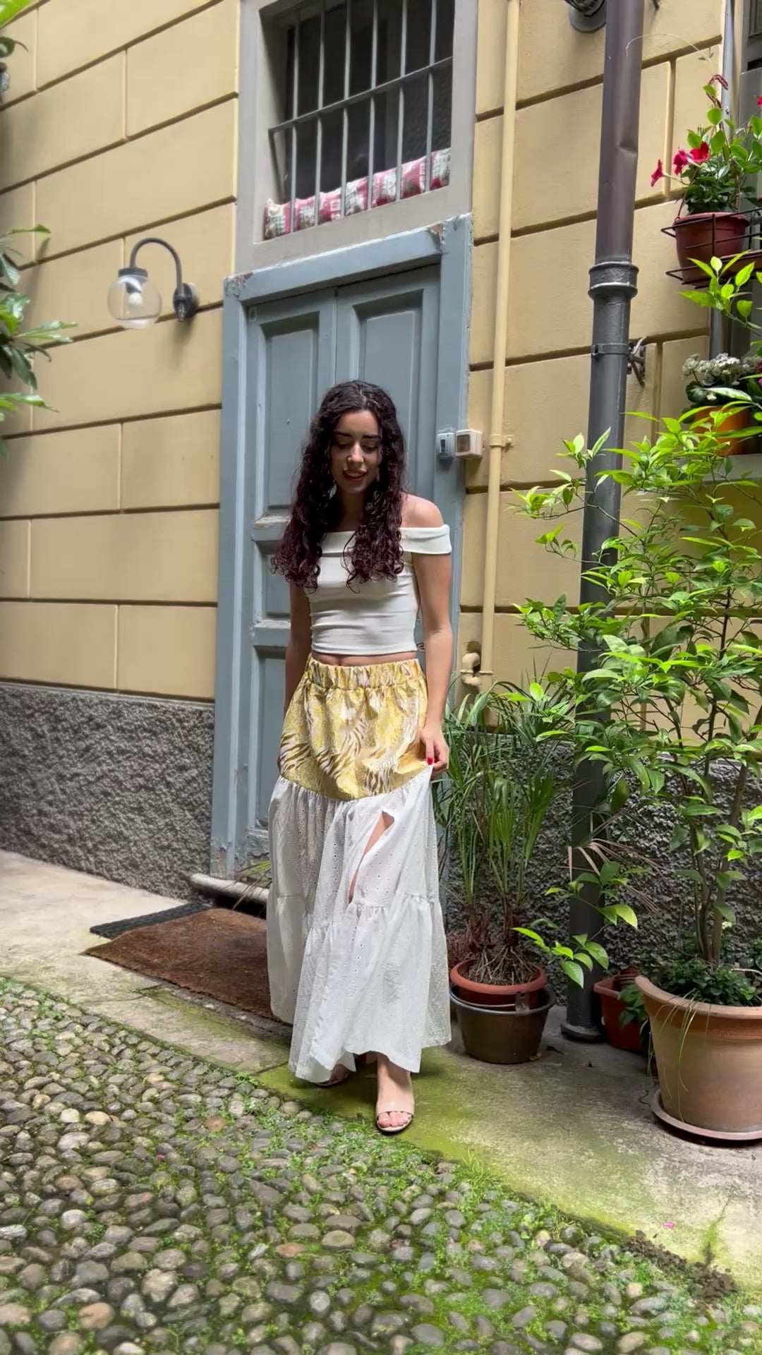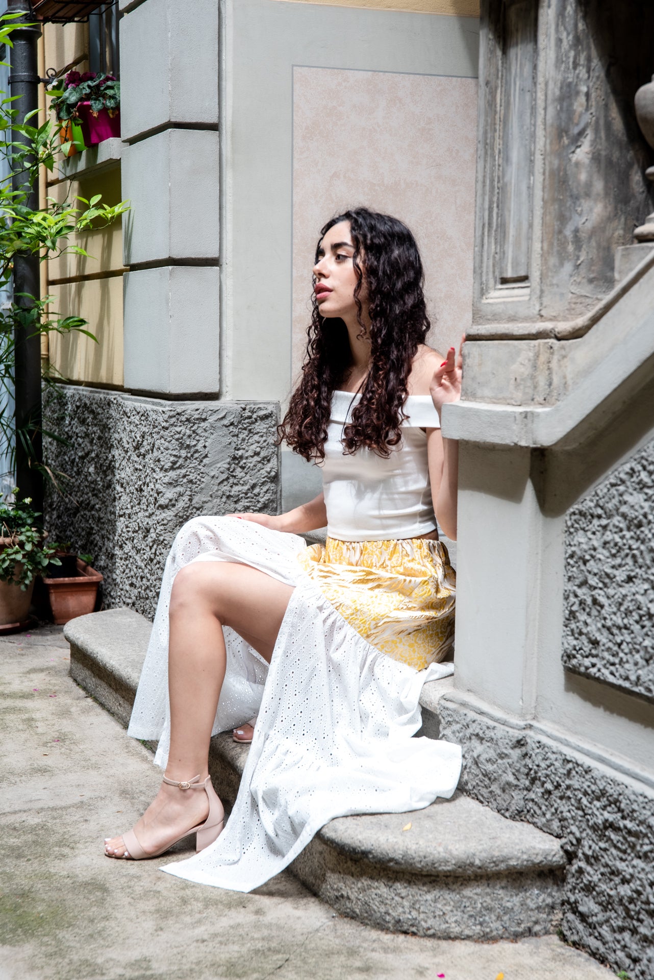 Gonna Franci Broccato Limone e Cotone Ricamato
