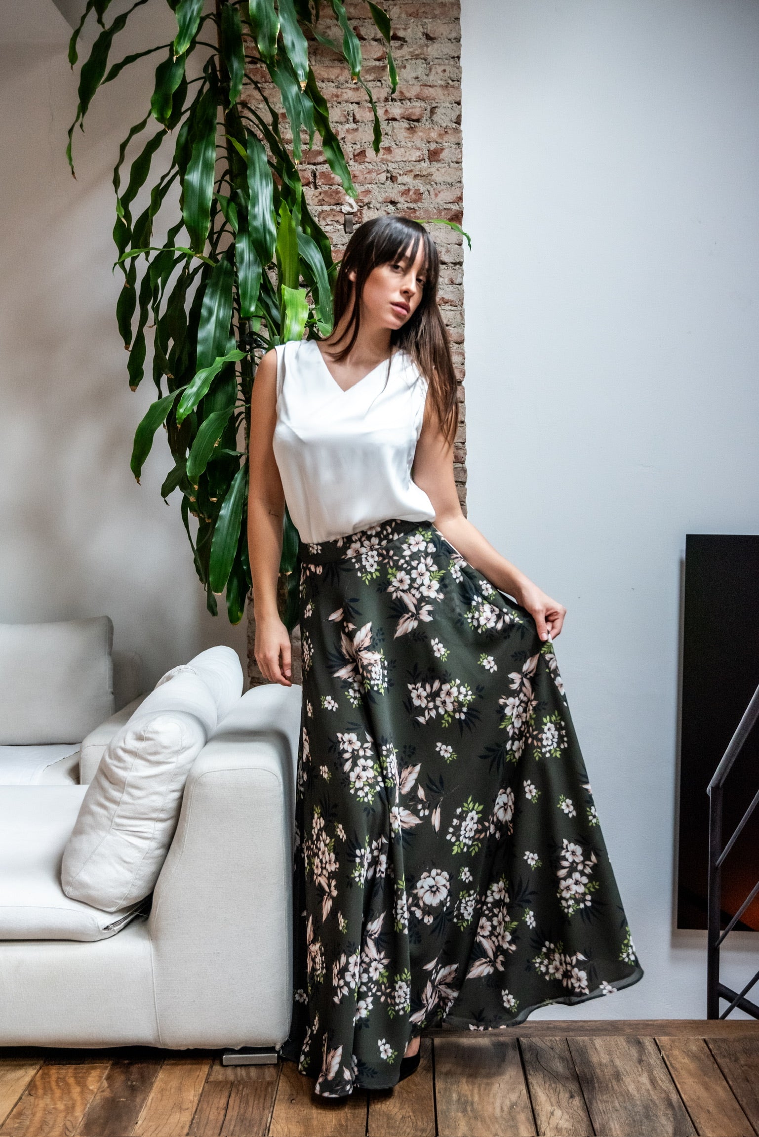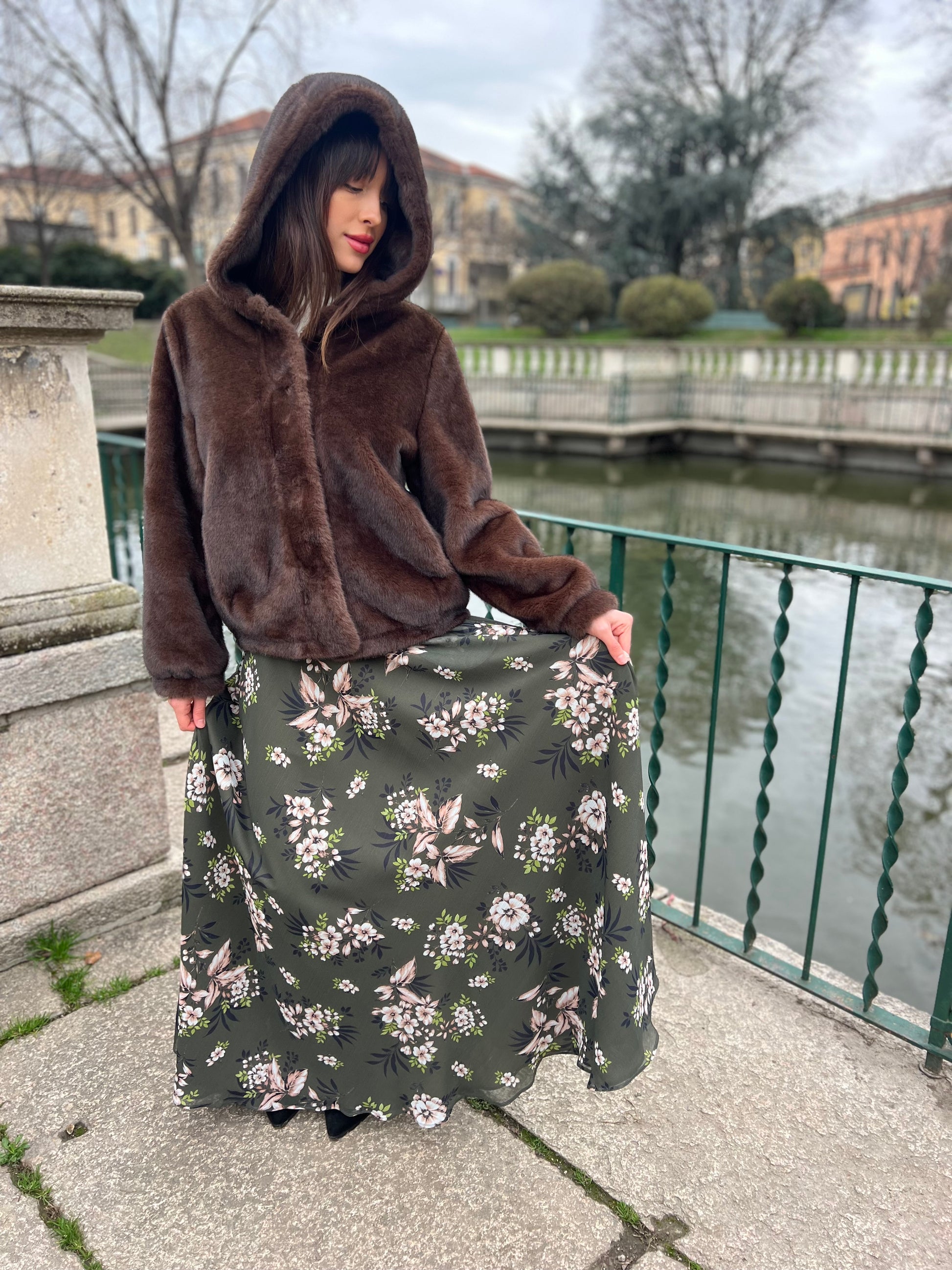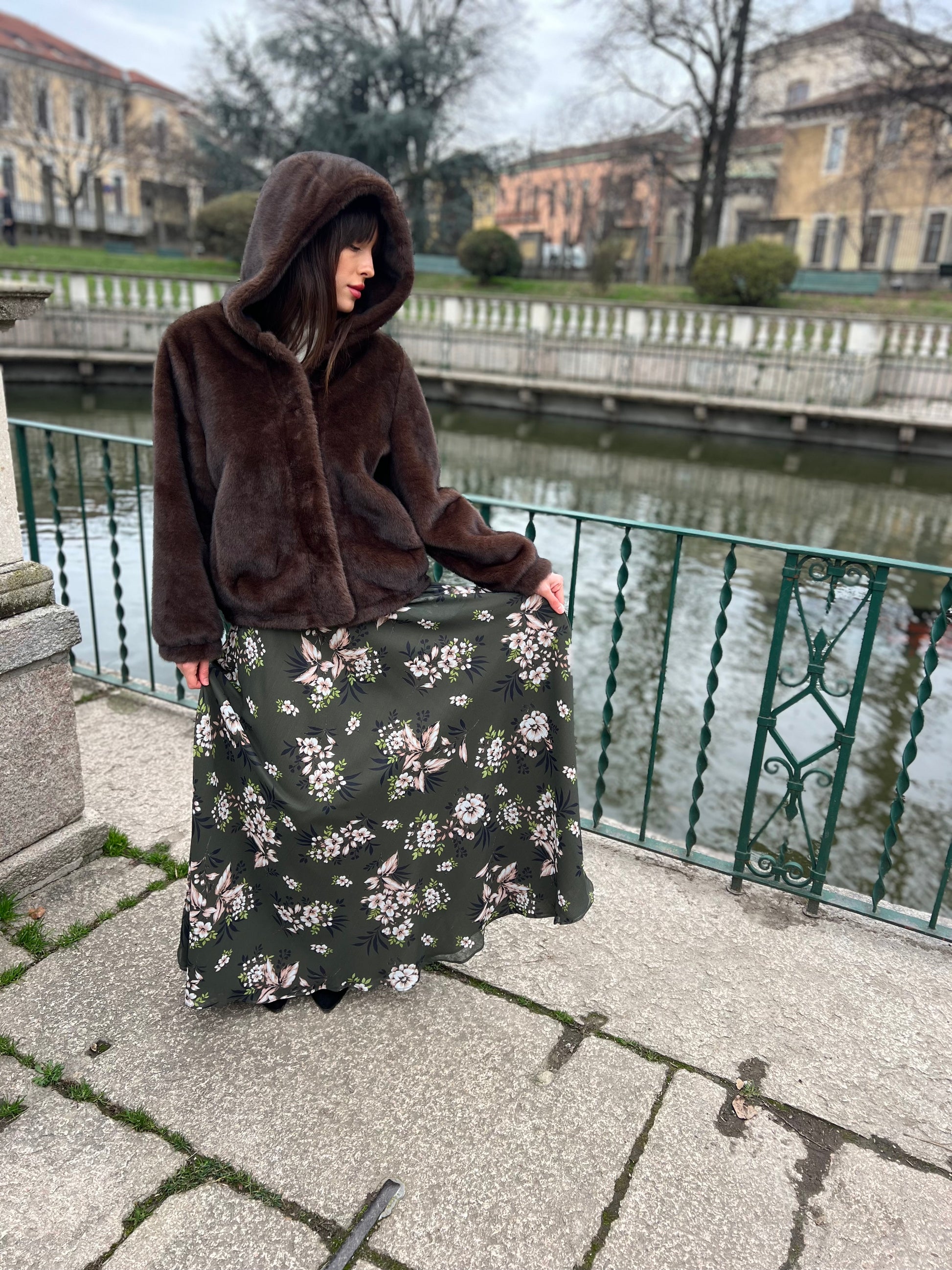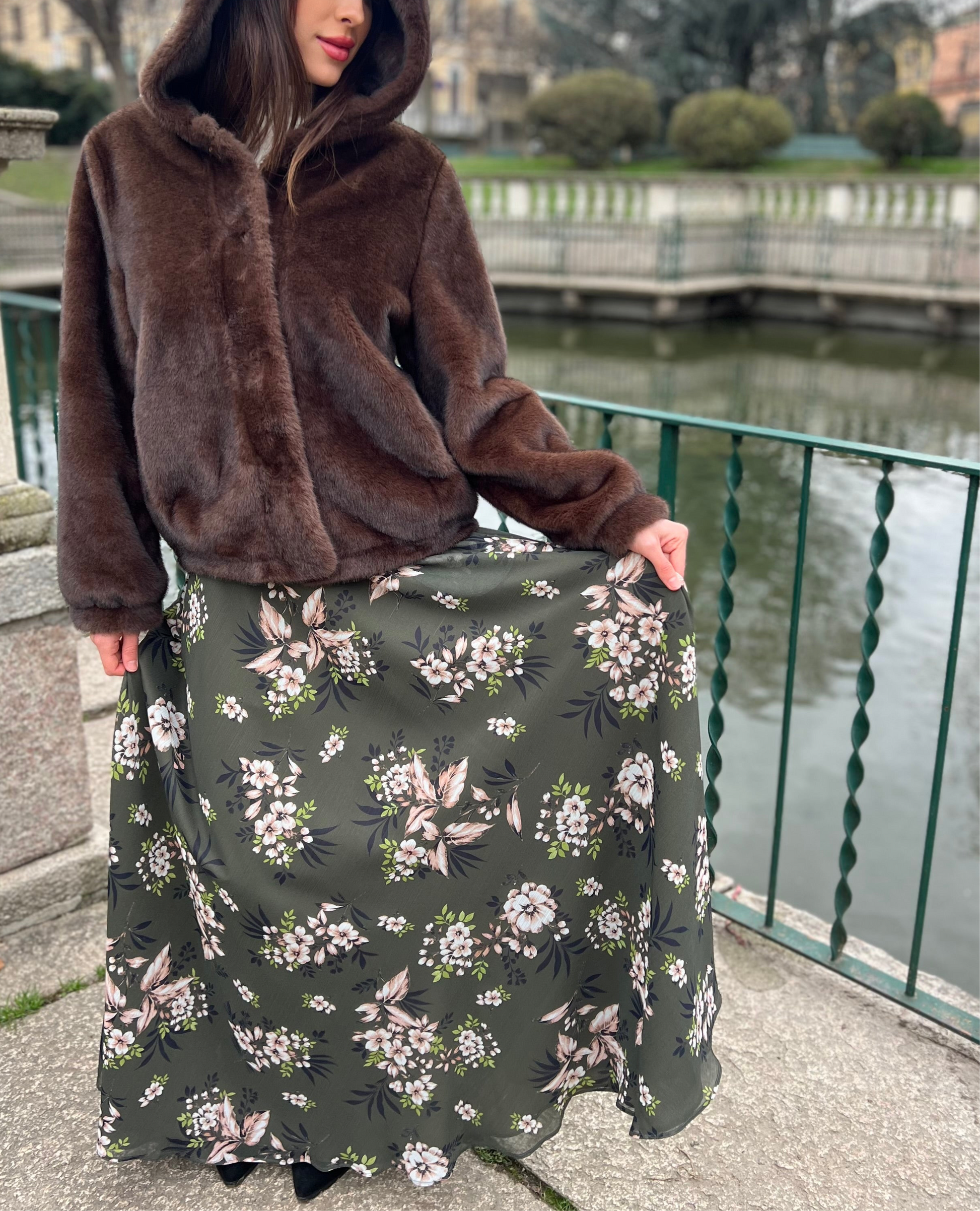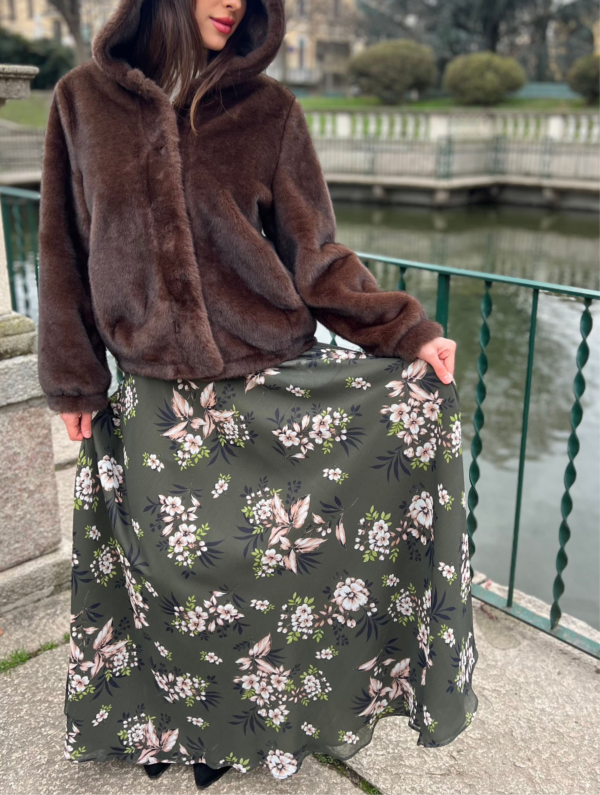 Gonna lunga modello Malu’ a mezza ruota in tessuto di chiffon morbido con tasche sui fianchi e una morbida fodera che rende la gonna utilizzabile nelle 4 stagioni perfetta in inverno con un golf di cachemire è stupenda in estate con un top o una camicia di cotone. La gonna Malu’ è un capo intramontabile e molto versatile.