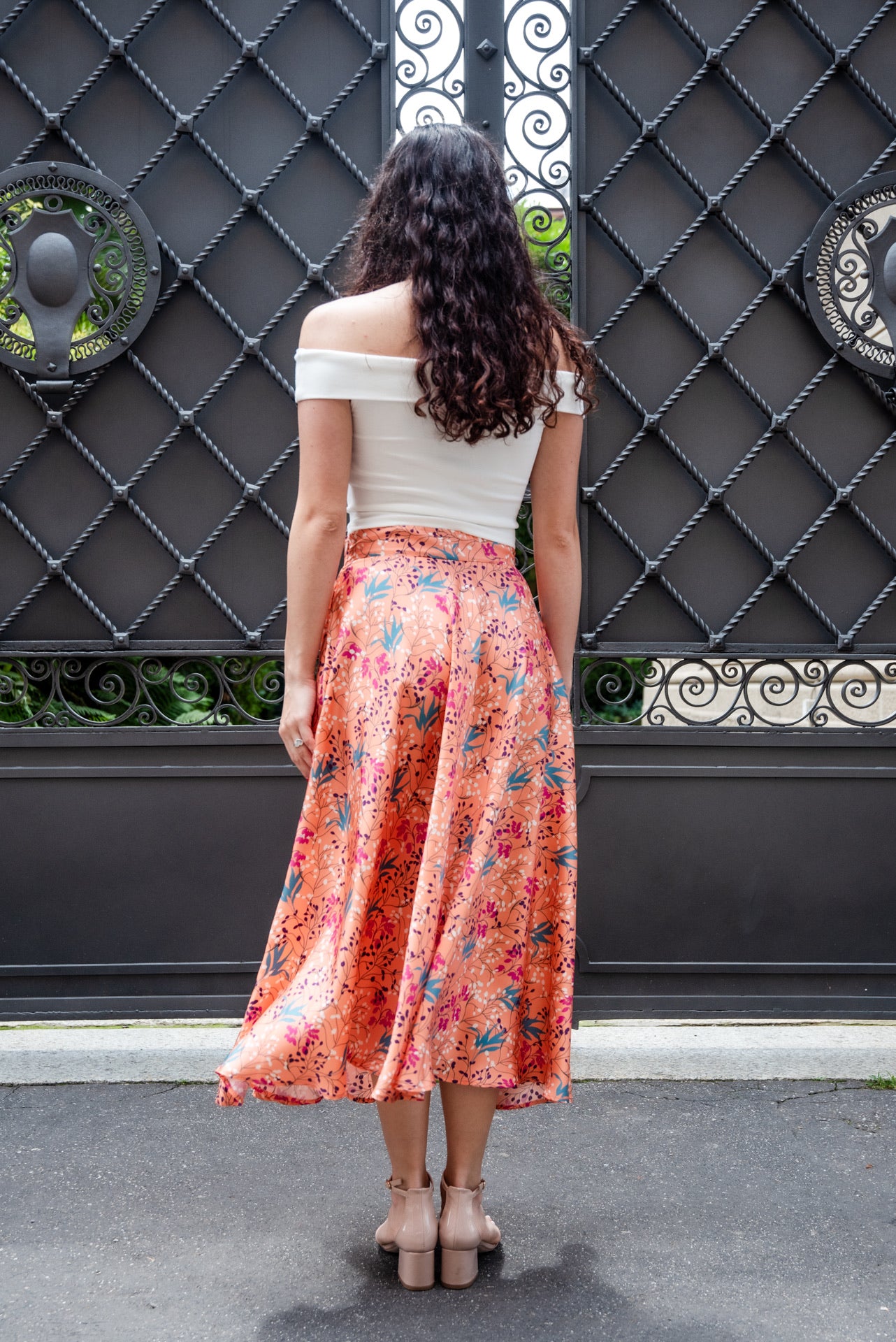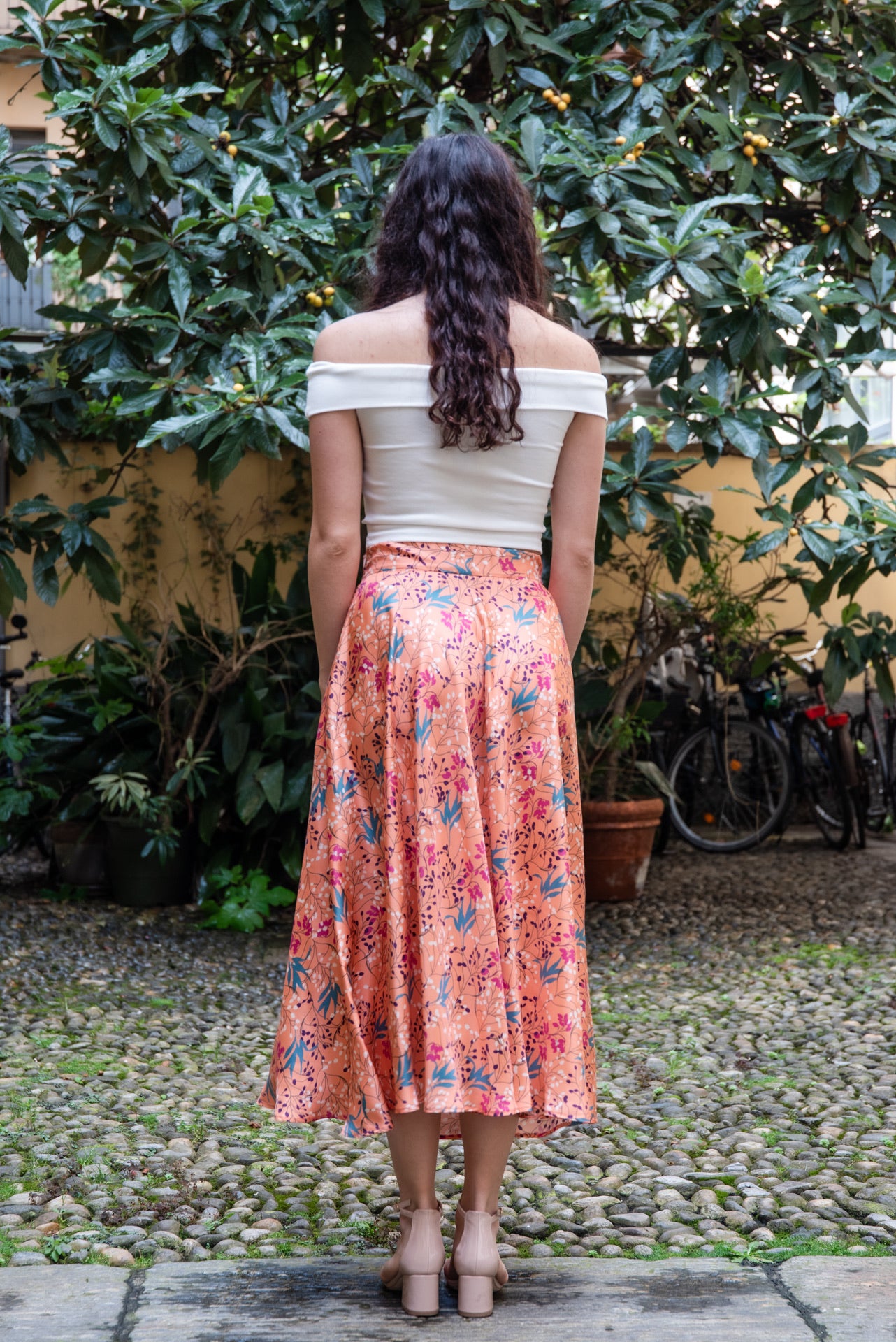 Gonna lunga modello Malu’ a mezza ruota in tessuto di satin morbido con tasche sui fianchi