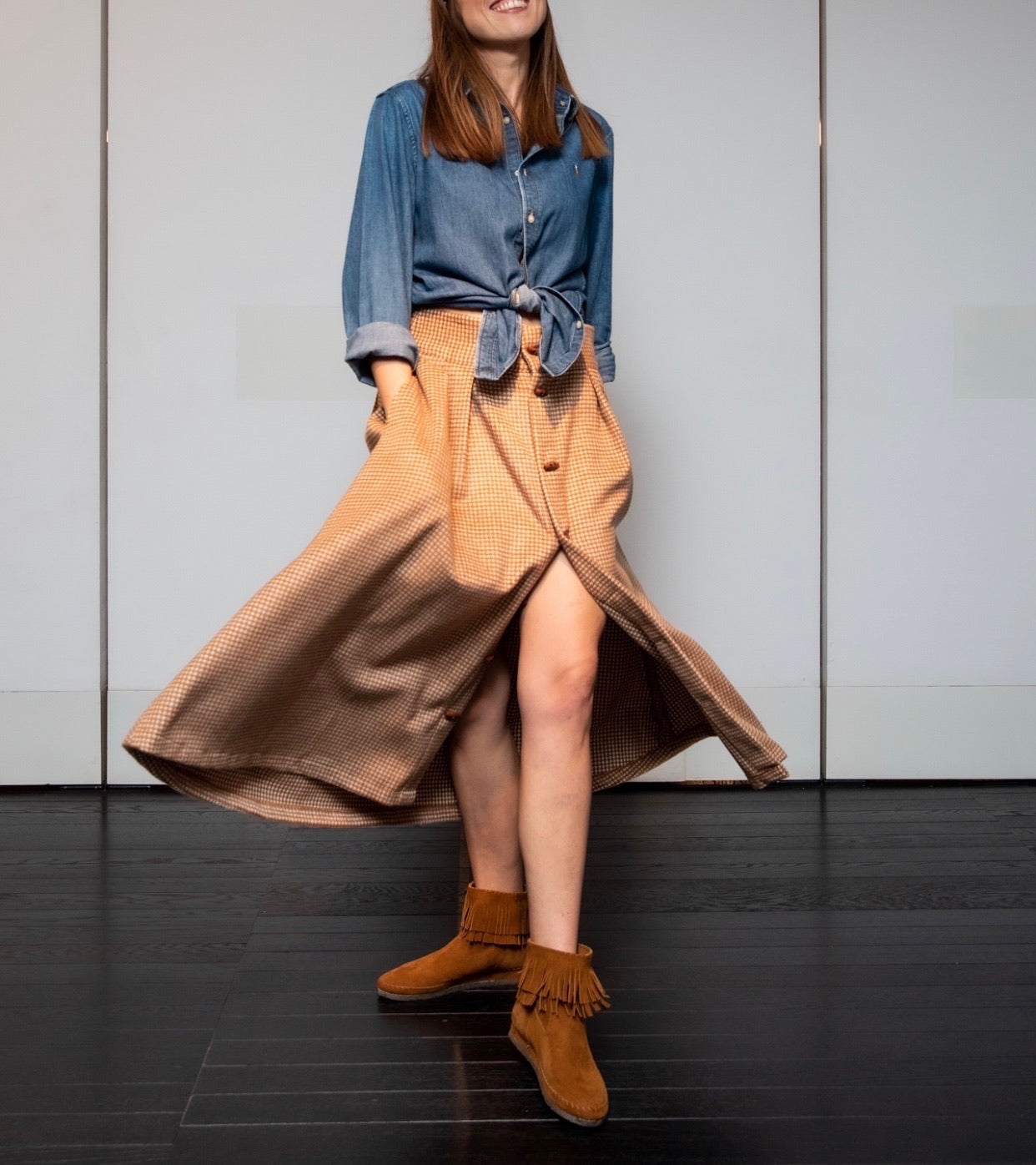 La Gonna modello Miriam Sami Sabbadini è un continuativo della collezione ed è disponibile anche su misura in diverse varietà di tessuto