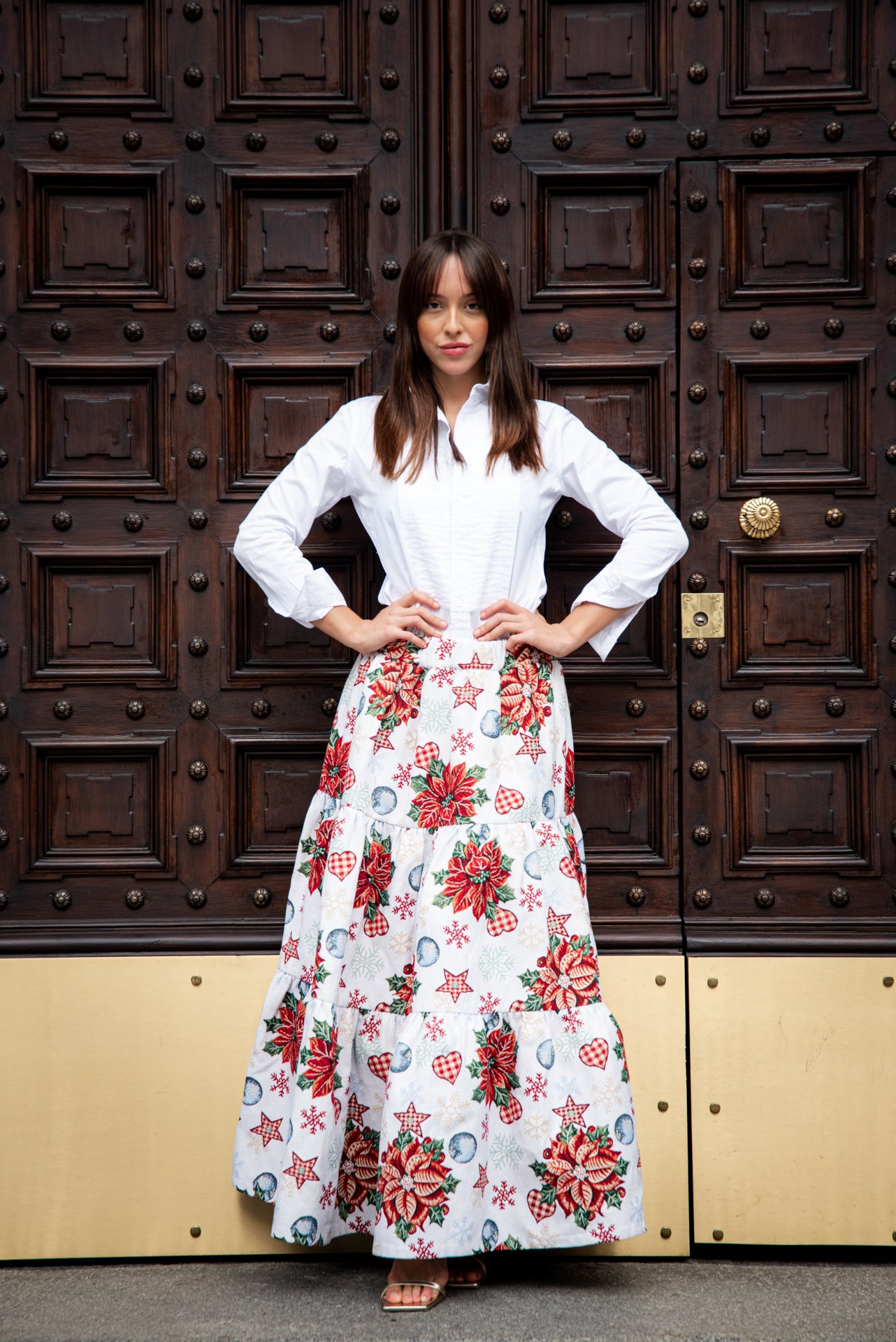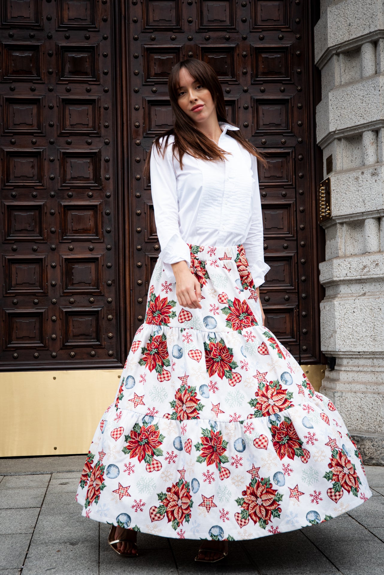 Maxi Gonna modello Franci in tessuto broccato molto pesante con motivo Natalizio