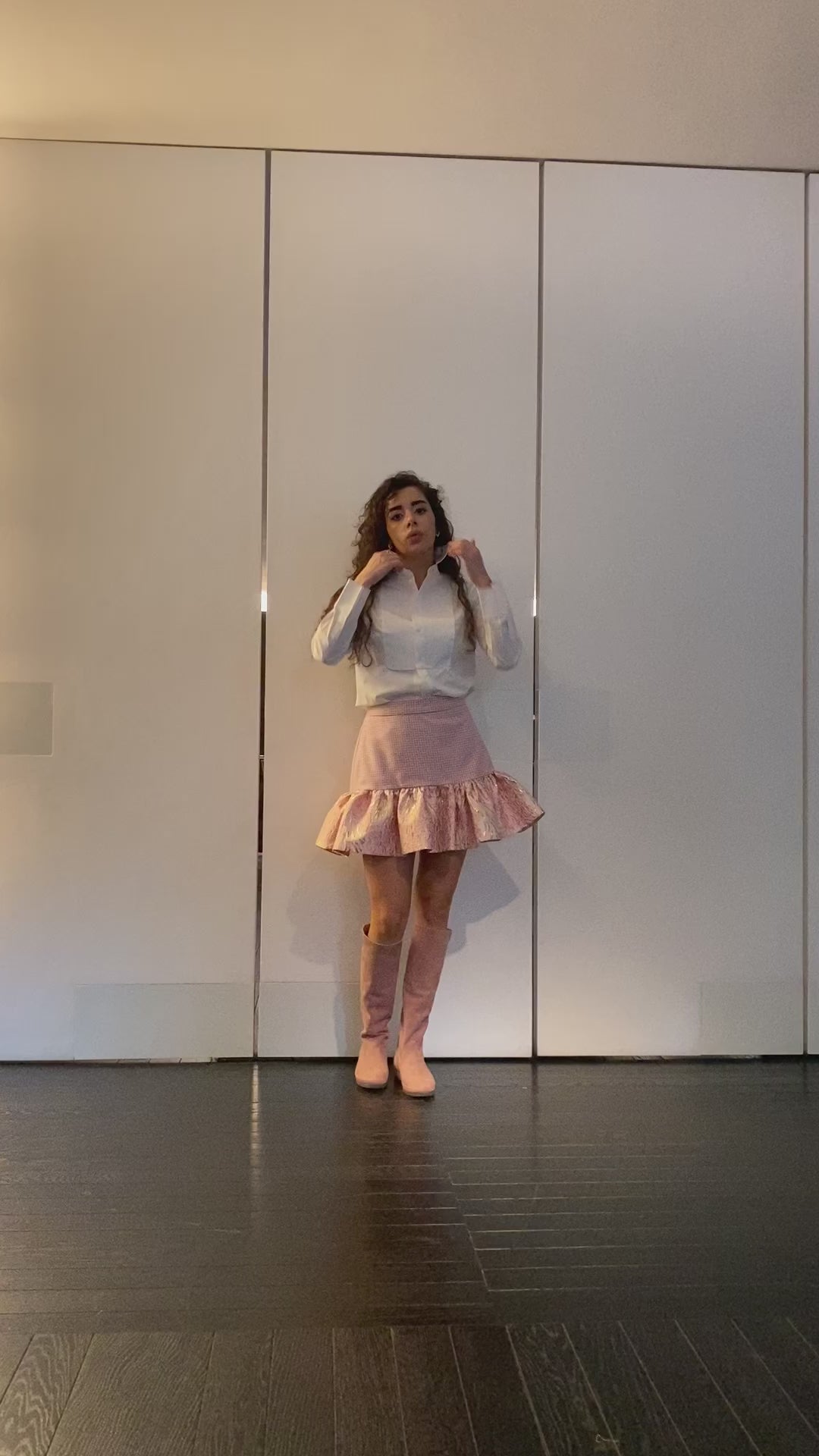 Gonna Kiki in Lana con Balza in Broccato Rosa Cipria