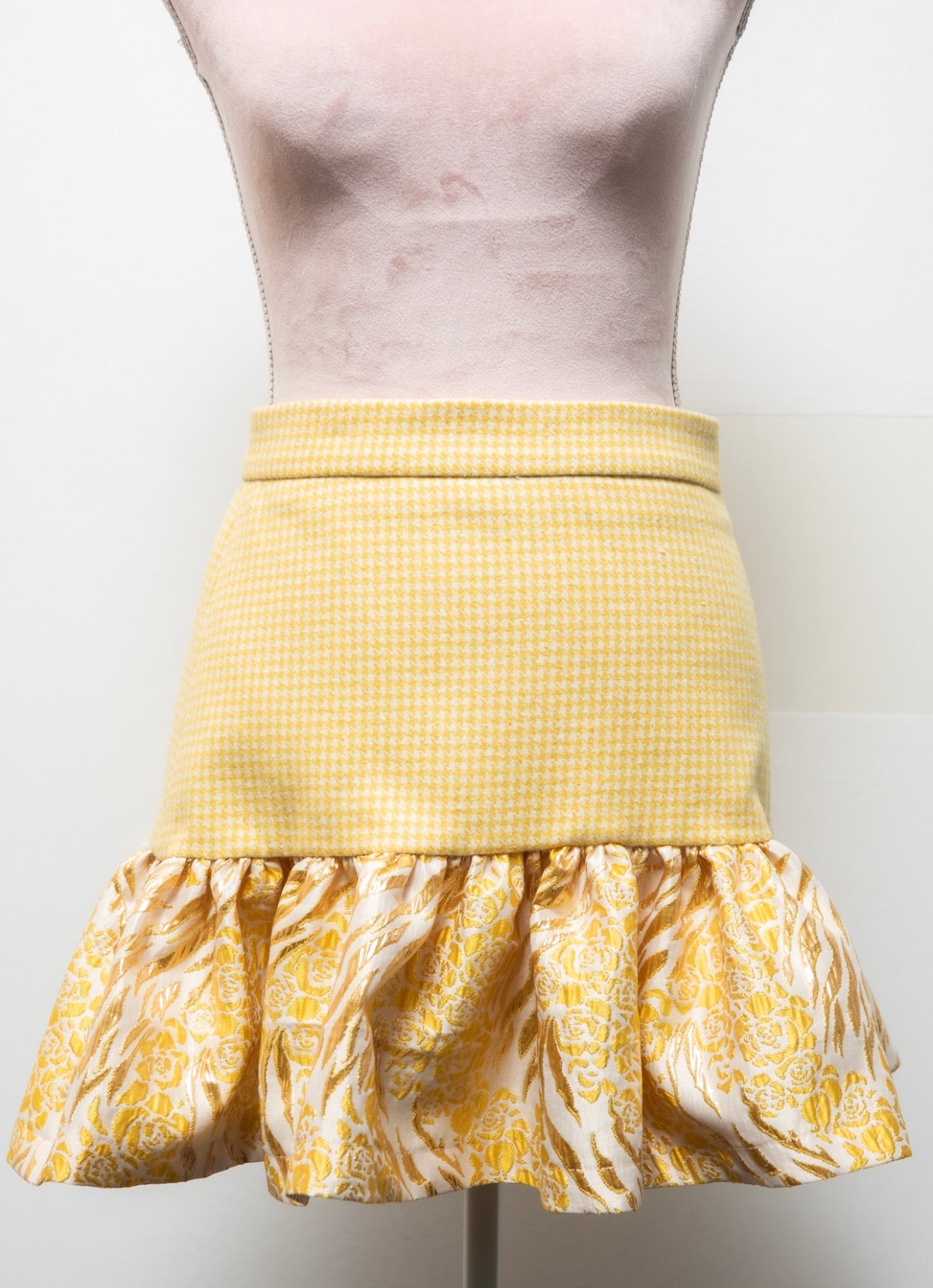Gonna Kiki in Lana con Balza in Broccato Giallo Limone