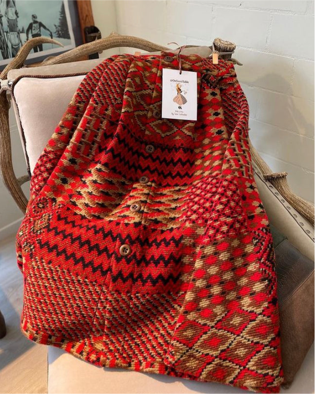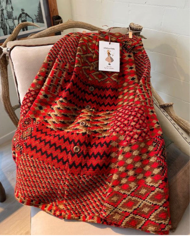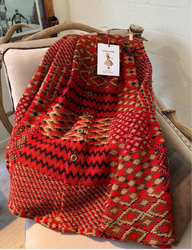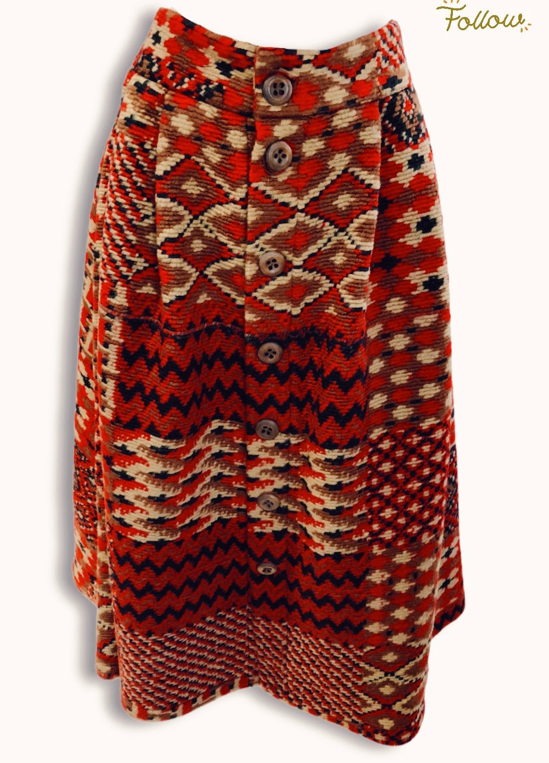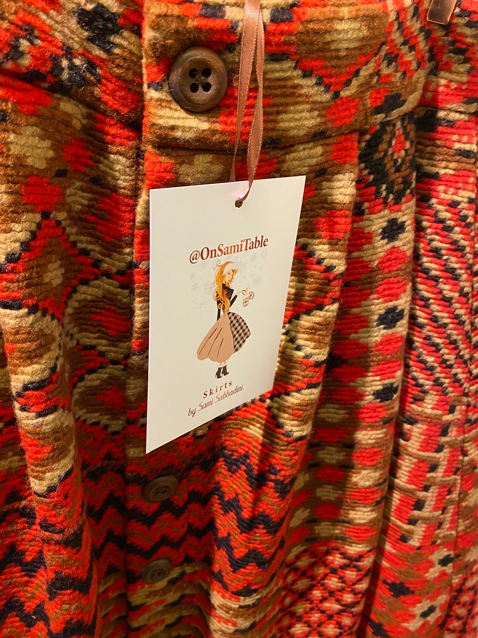 Favolosa gonna in Lana pesante con motivo fantasia con bottoni in legno. Favolosa per le serate in montagna