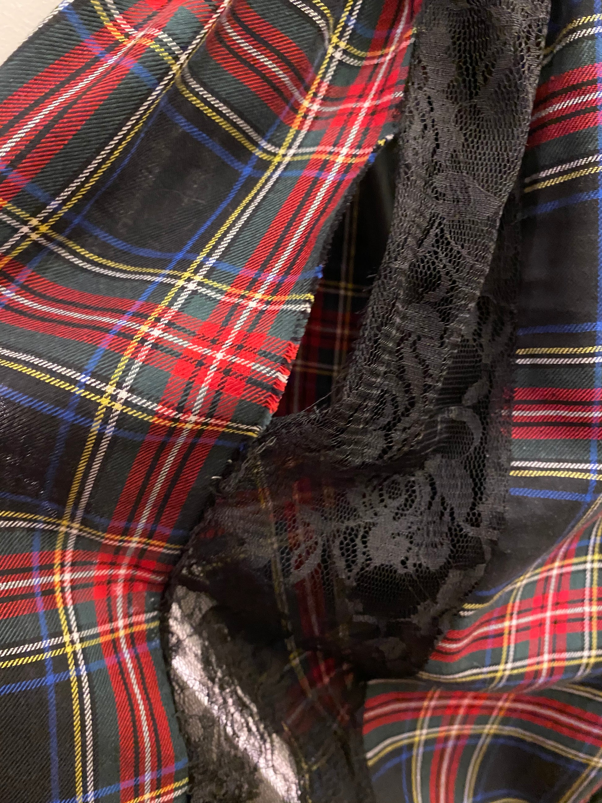 Gonna Natalizia motivo scozzese nero e pizzo con elastico in vita