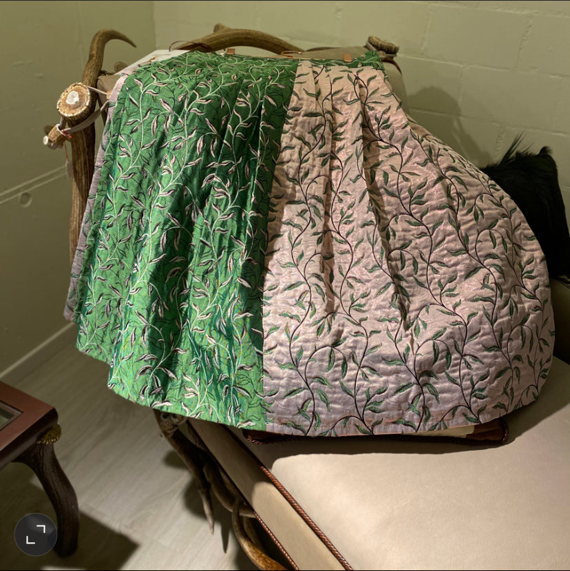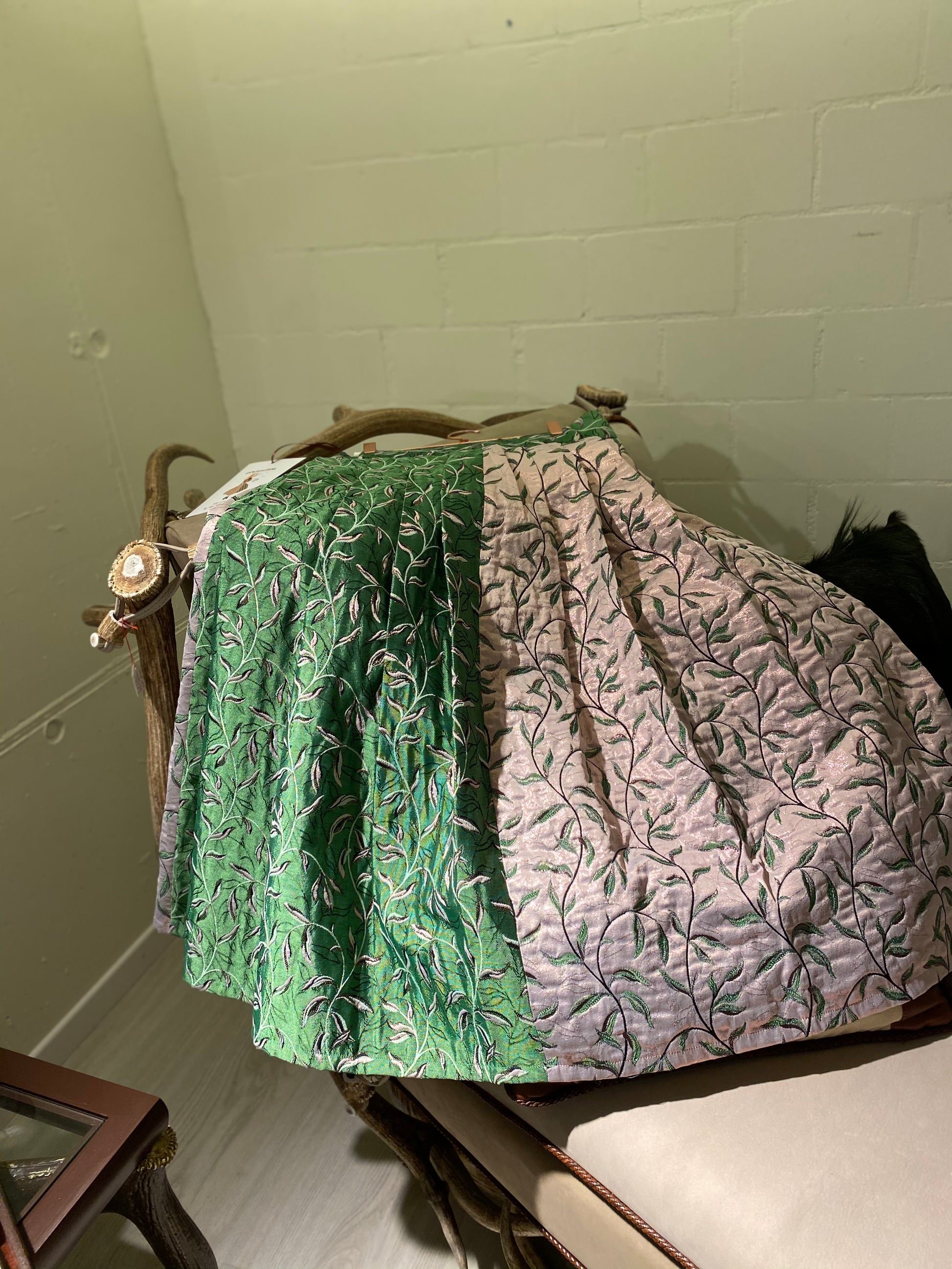 Gonna Robi Broccato Bicolore Verde e Rosa