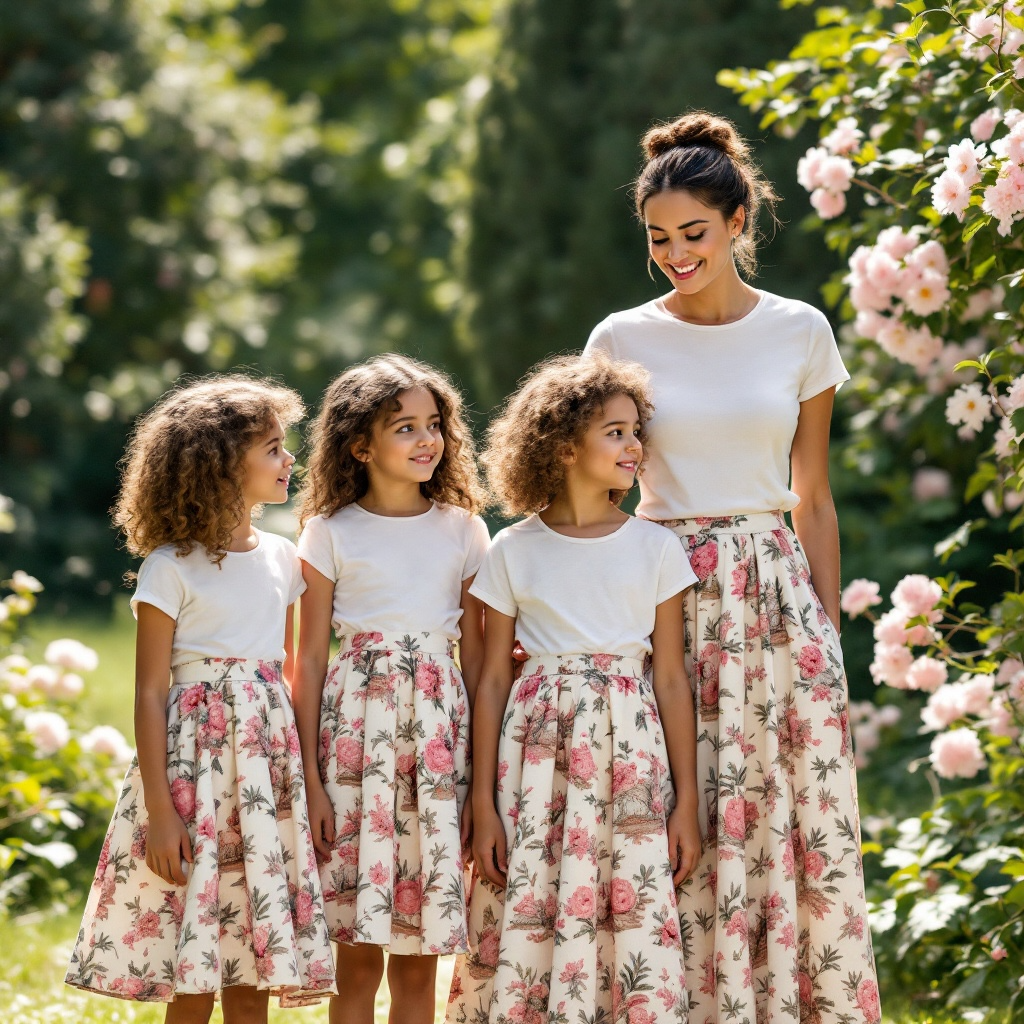 Gonna con motivo ROSE dipinte da BIMBA O TEEN in tessuto di cotone mezzo Panama a ruota con elastico in vita la consegna è in 7 giorni lavorativi