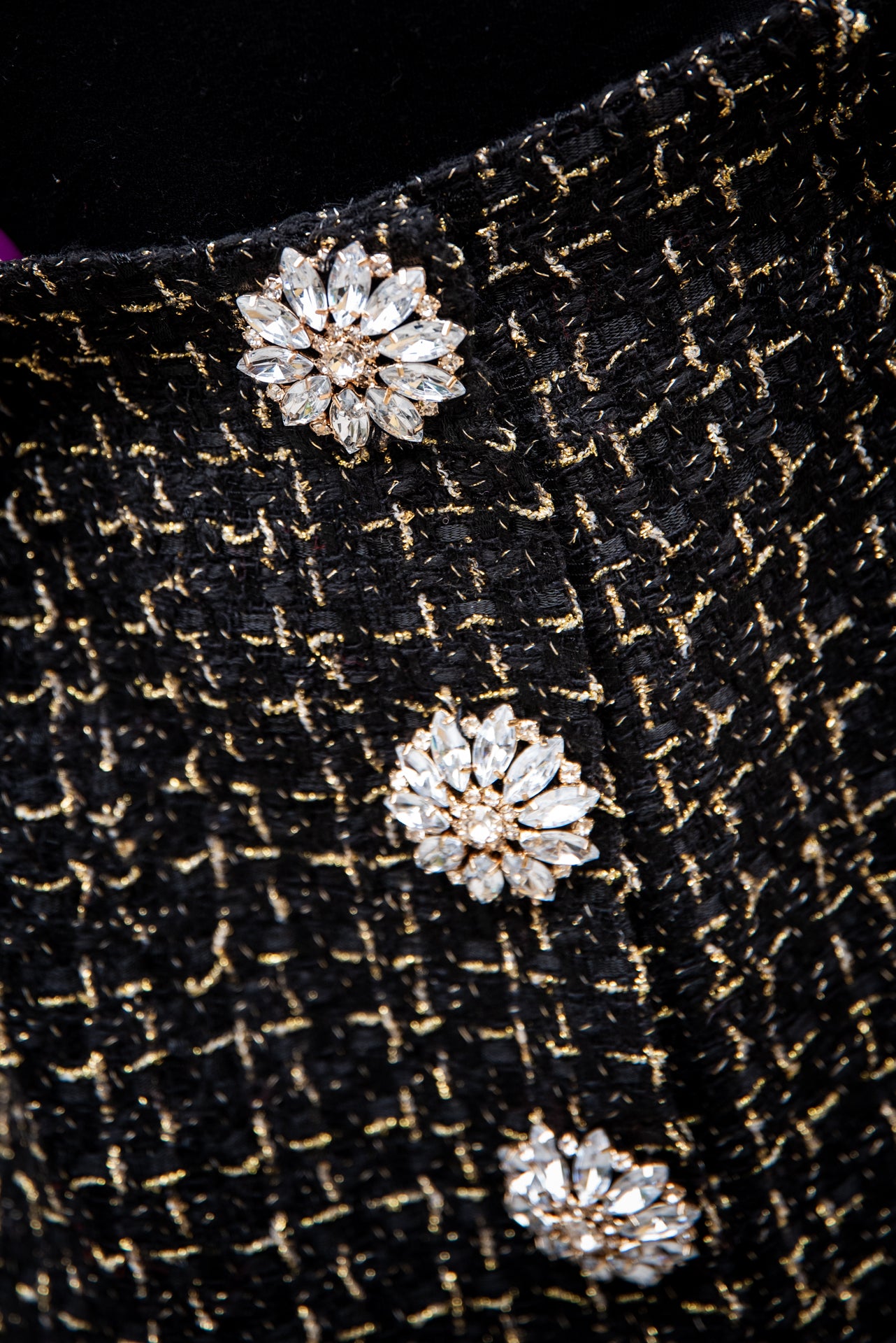 Gonna Tiziana Tweed Nero Bottoni gioiello