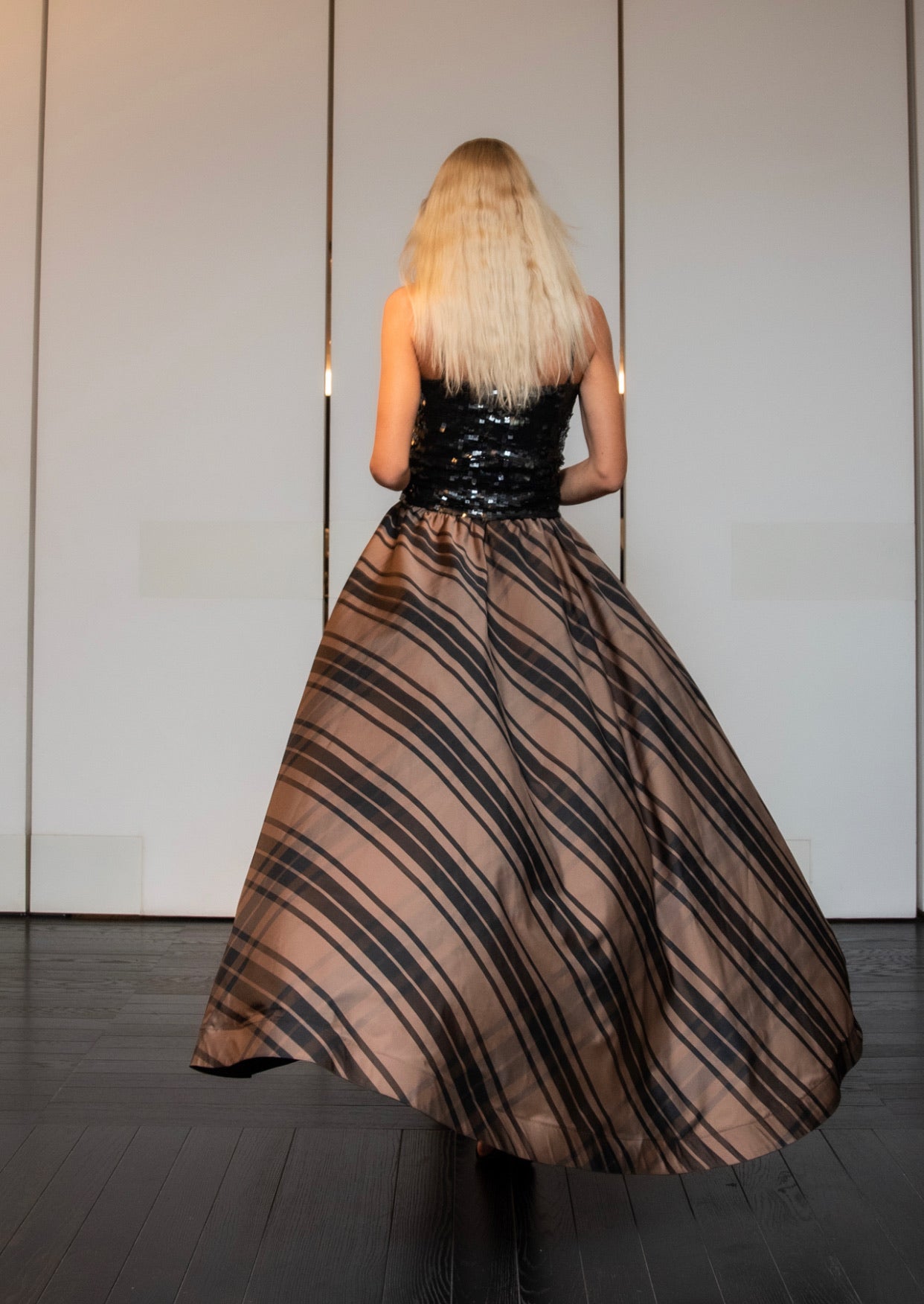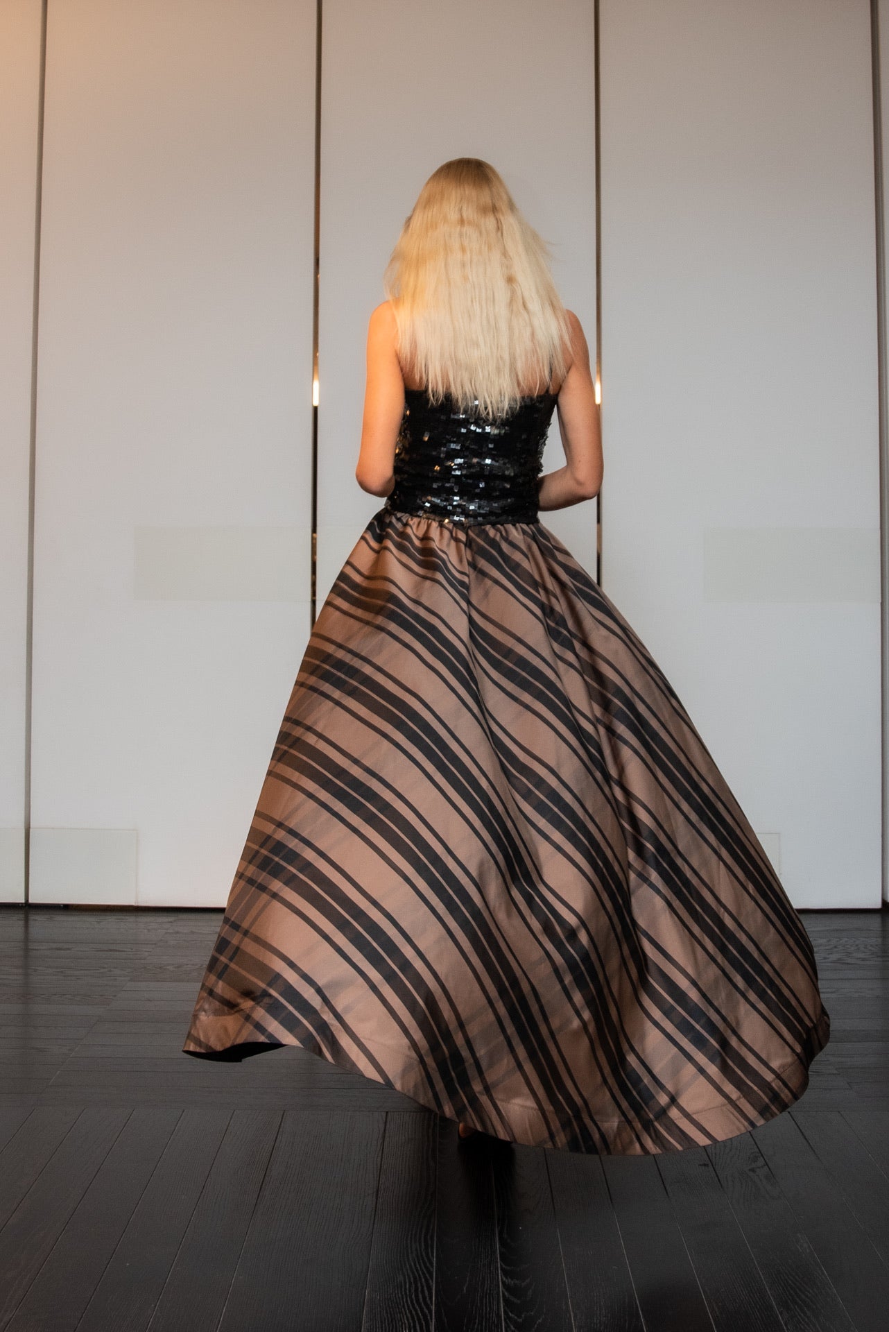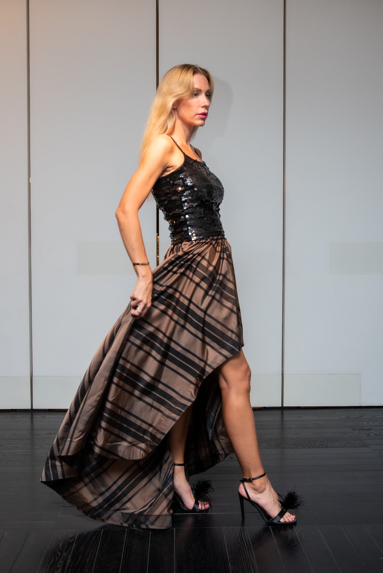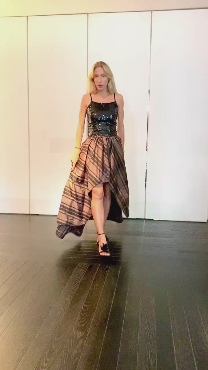 Gonna modello Sissi in tartan di Nylon modello Sissi lunga dietro e corta davanti in tessuto croccante di seta Limited edition. Questa gonna Sami Sabbadini dal taglio sofisticato è indicata per feste e serate eleganti in questa fantasia è specialmente indicata per le feste del periodo natalizio. bellissima abbinata a una camicia o top in sta pana o ad un maglione in cachemire nero.