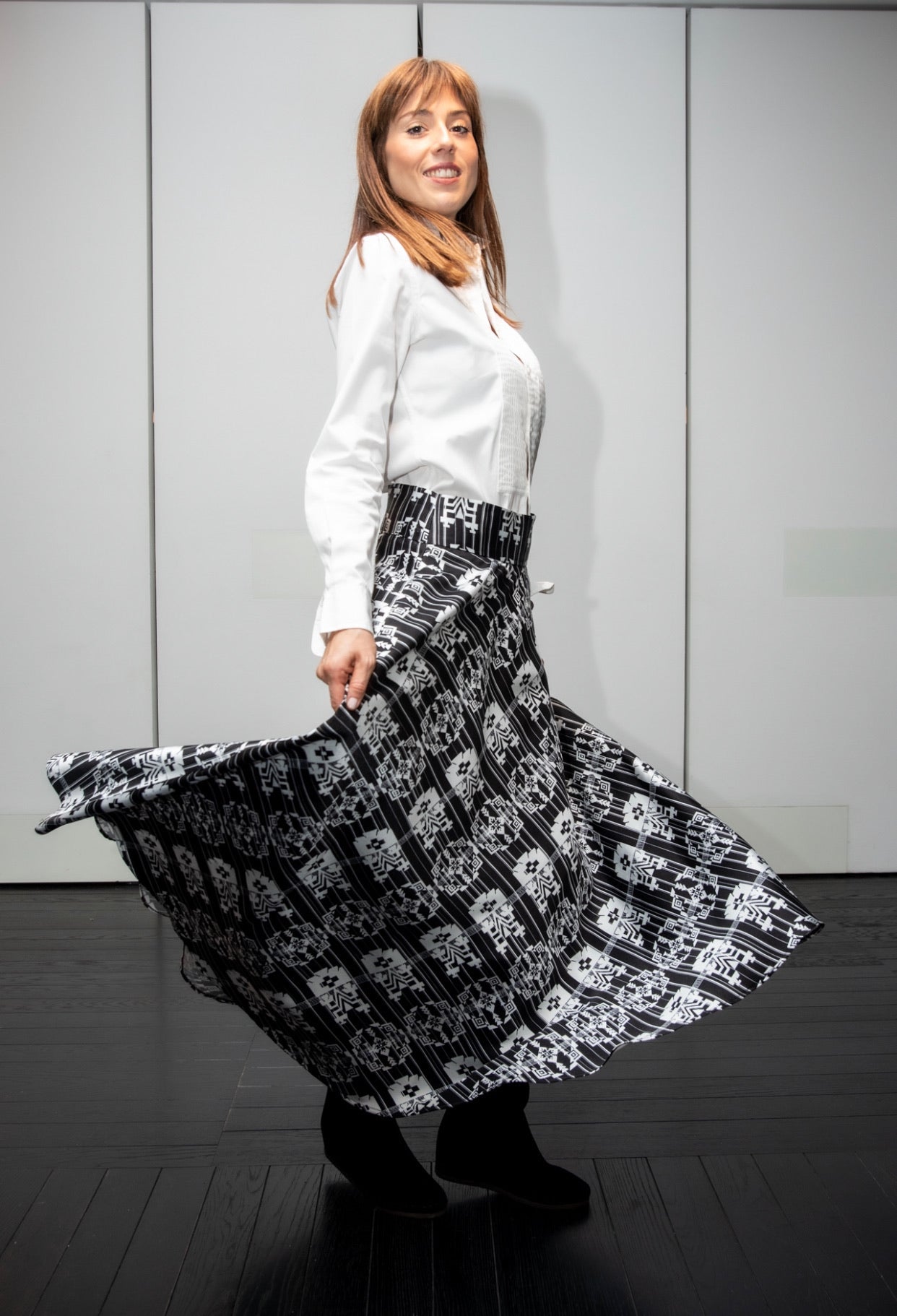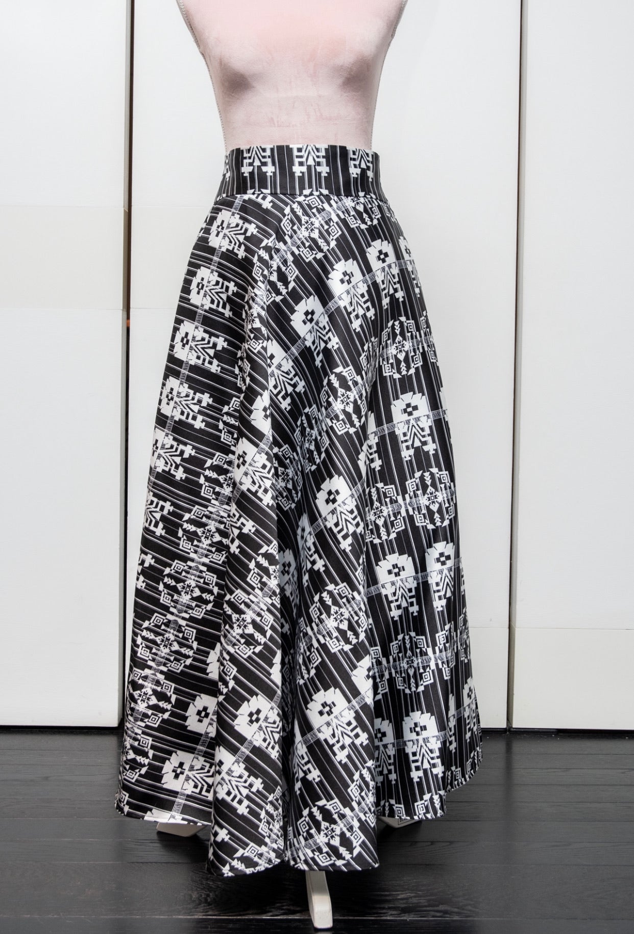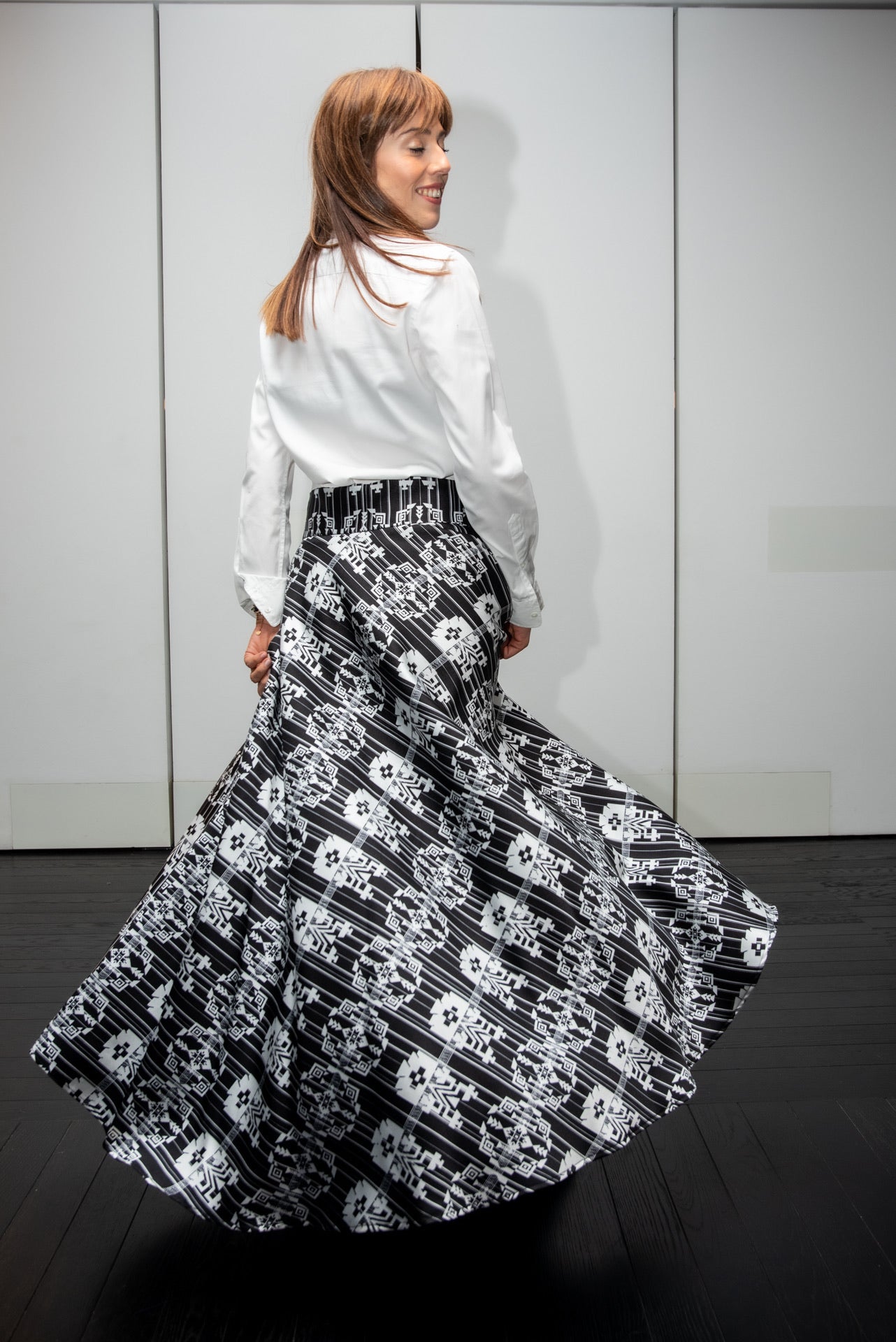 Gonna Modello Valentina a ruota in tessuto satin con disegno ITKAT con tasche laterali .