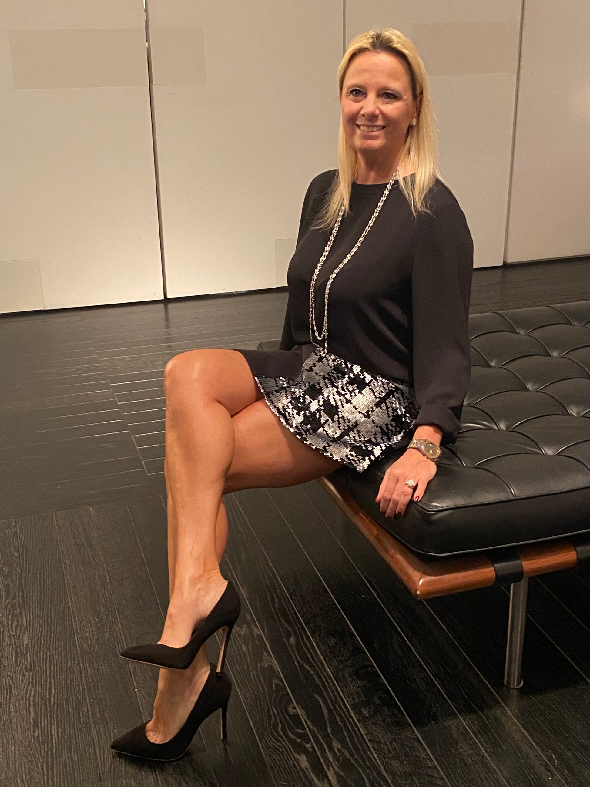 La gonna Monica è un pezzo davvero esclusivo e sofisticato molto sexy e il dettaglio delle paillettes, offre un tocco di eleganza e raffinatezza, perfetto per impreziosire qualsiasi look.