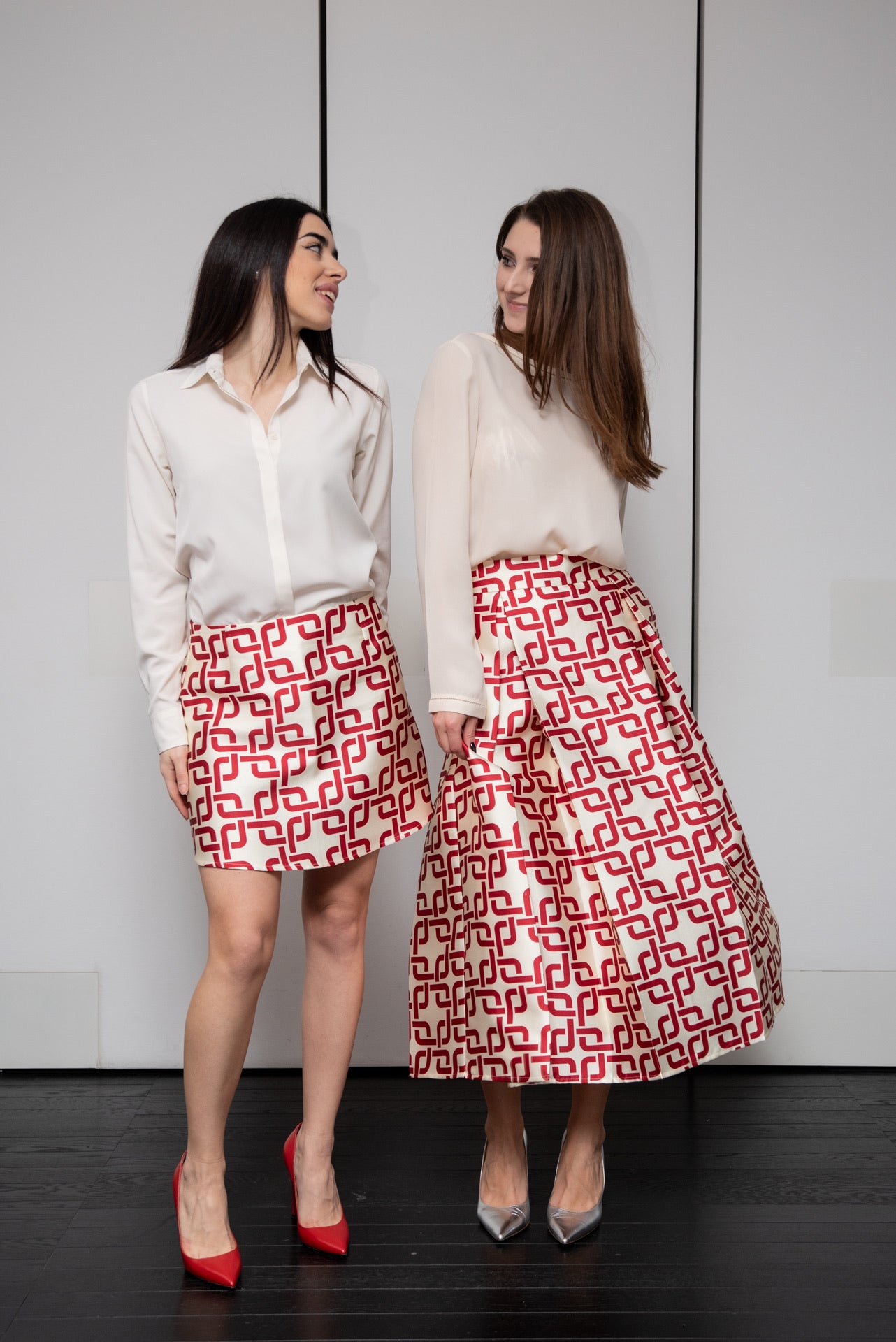 La minigonna modello Monica Sami Sabbadini in Mikado è un continuativo della collezione ed è disponibile anche su misura in diverse varietà di Mikado